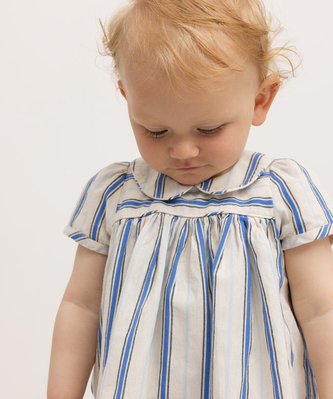 Dama LS, Dress - Blue Stripe