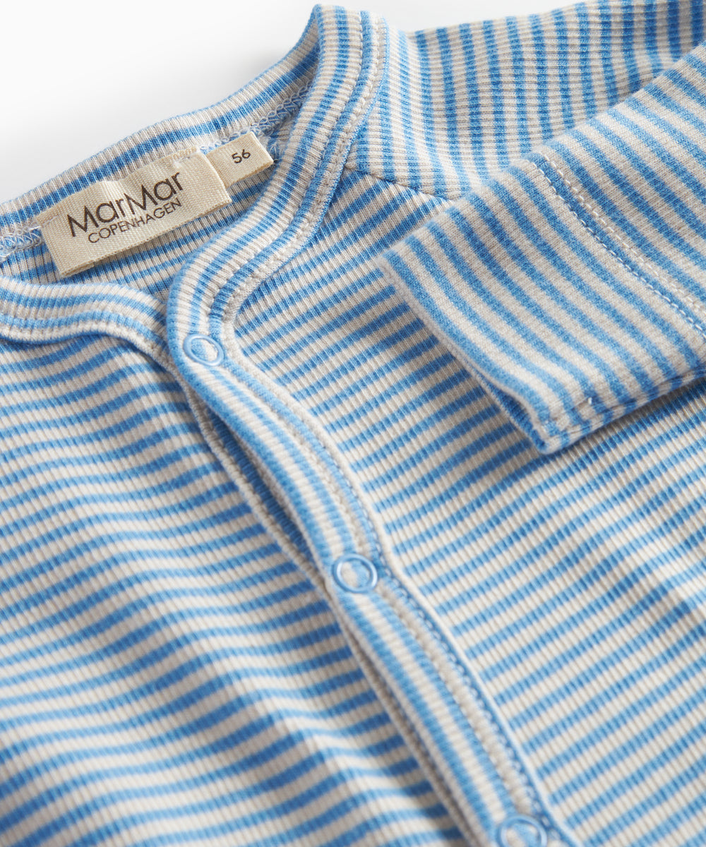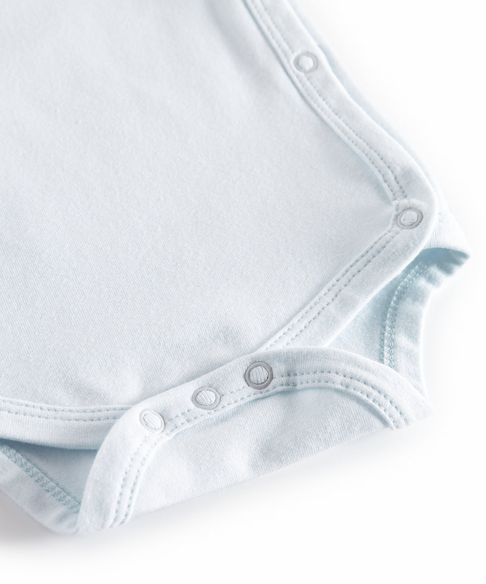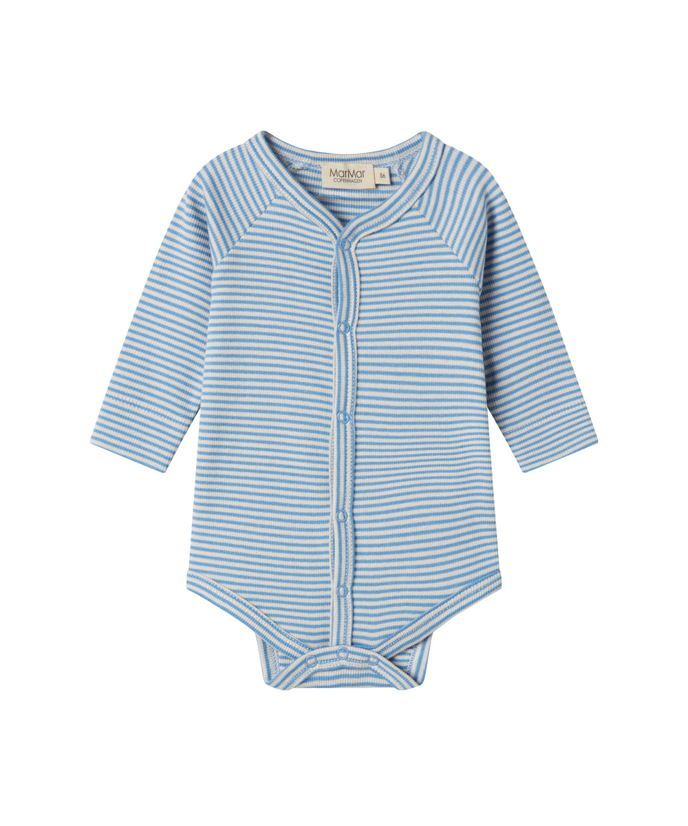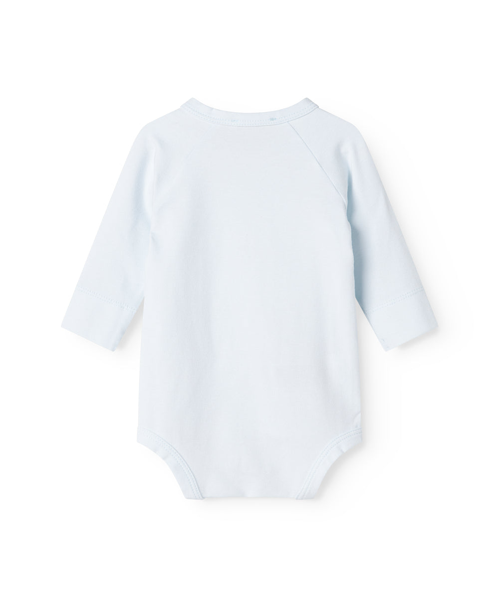 Lyseblå slå-om body til baby i merinould