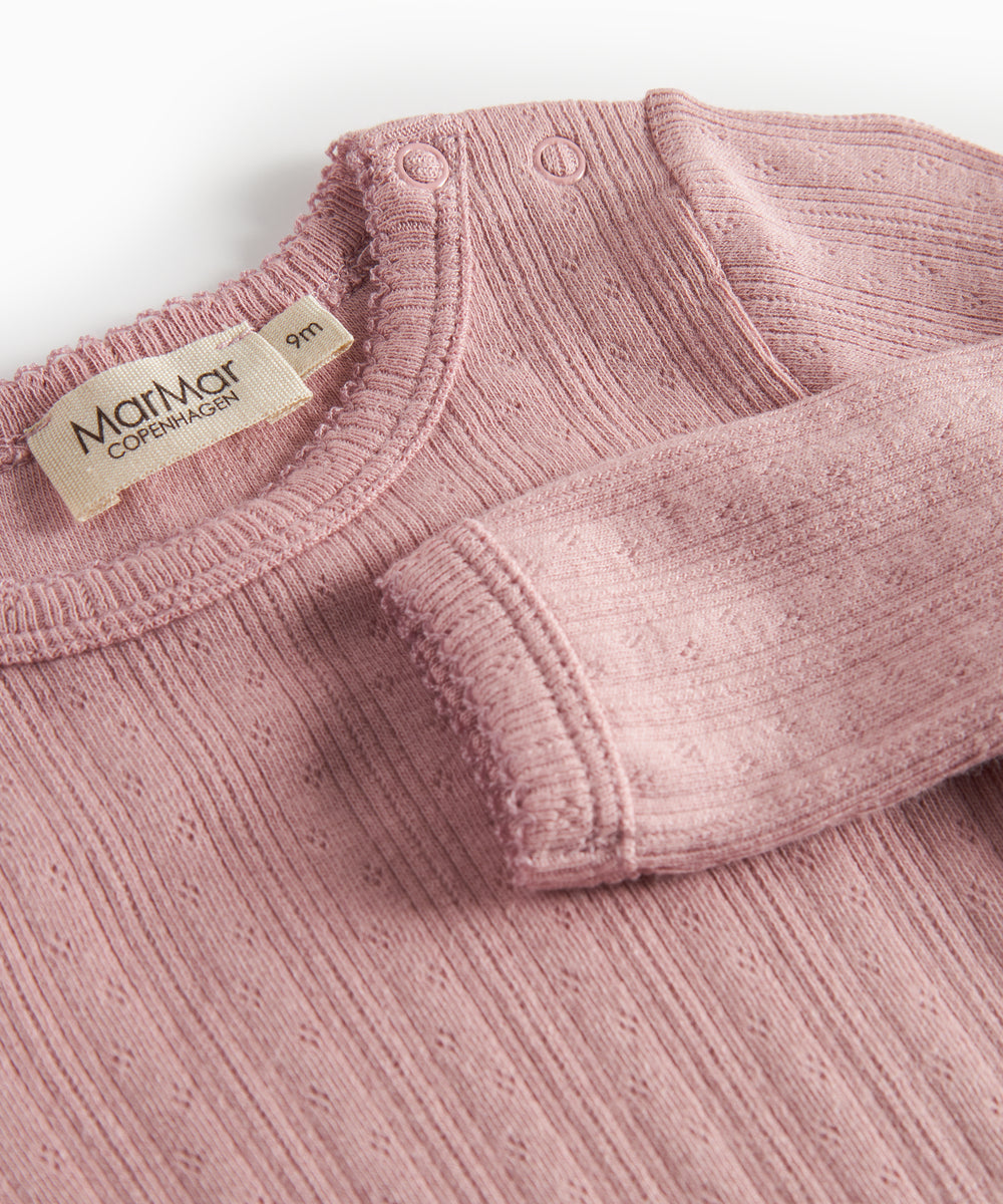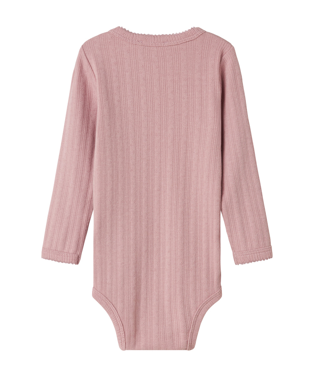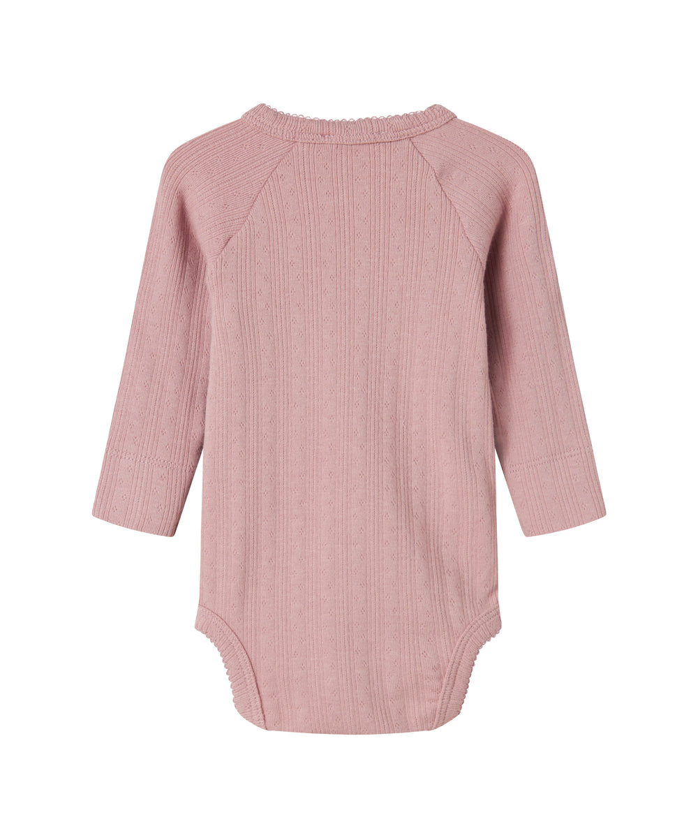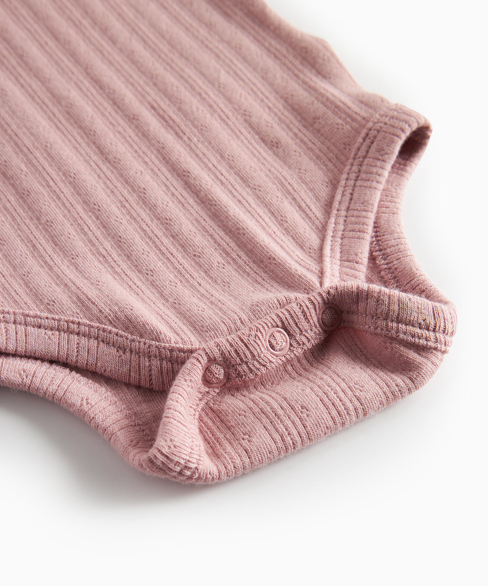 Støvet rosa ribstrikket body med lange ærmer til baby