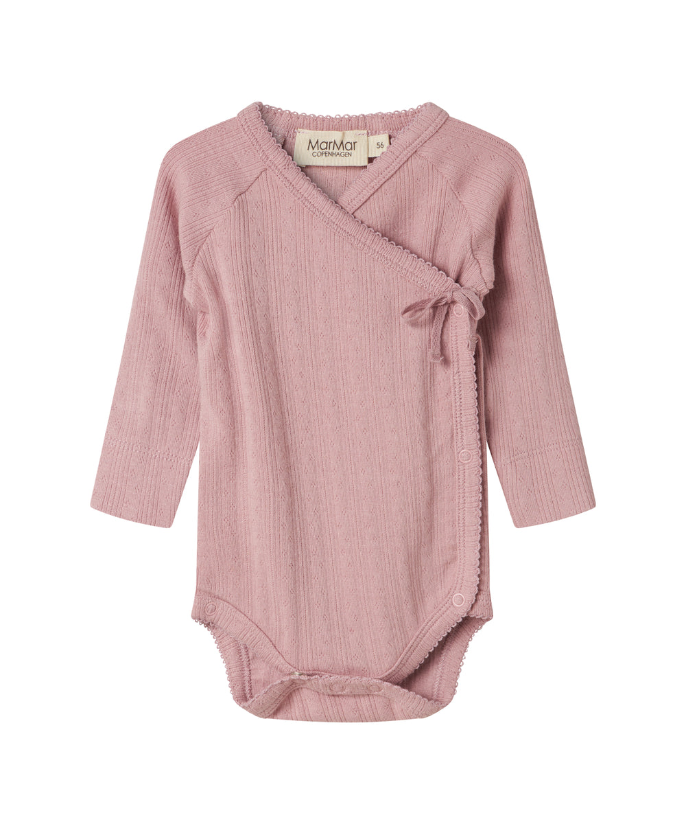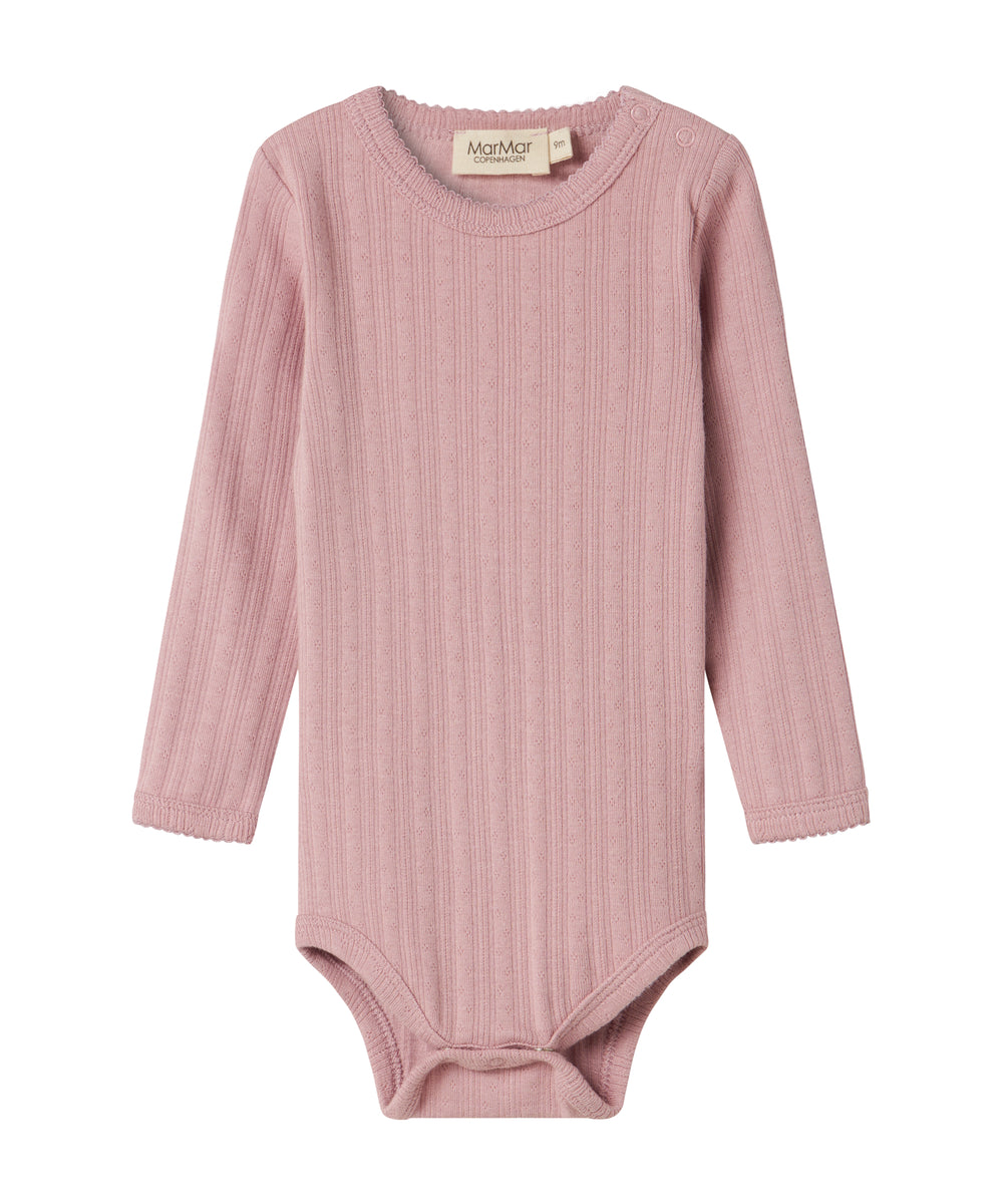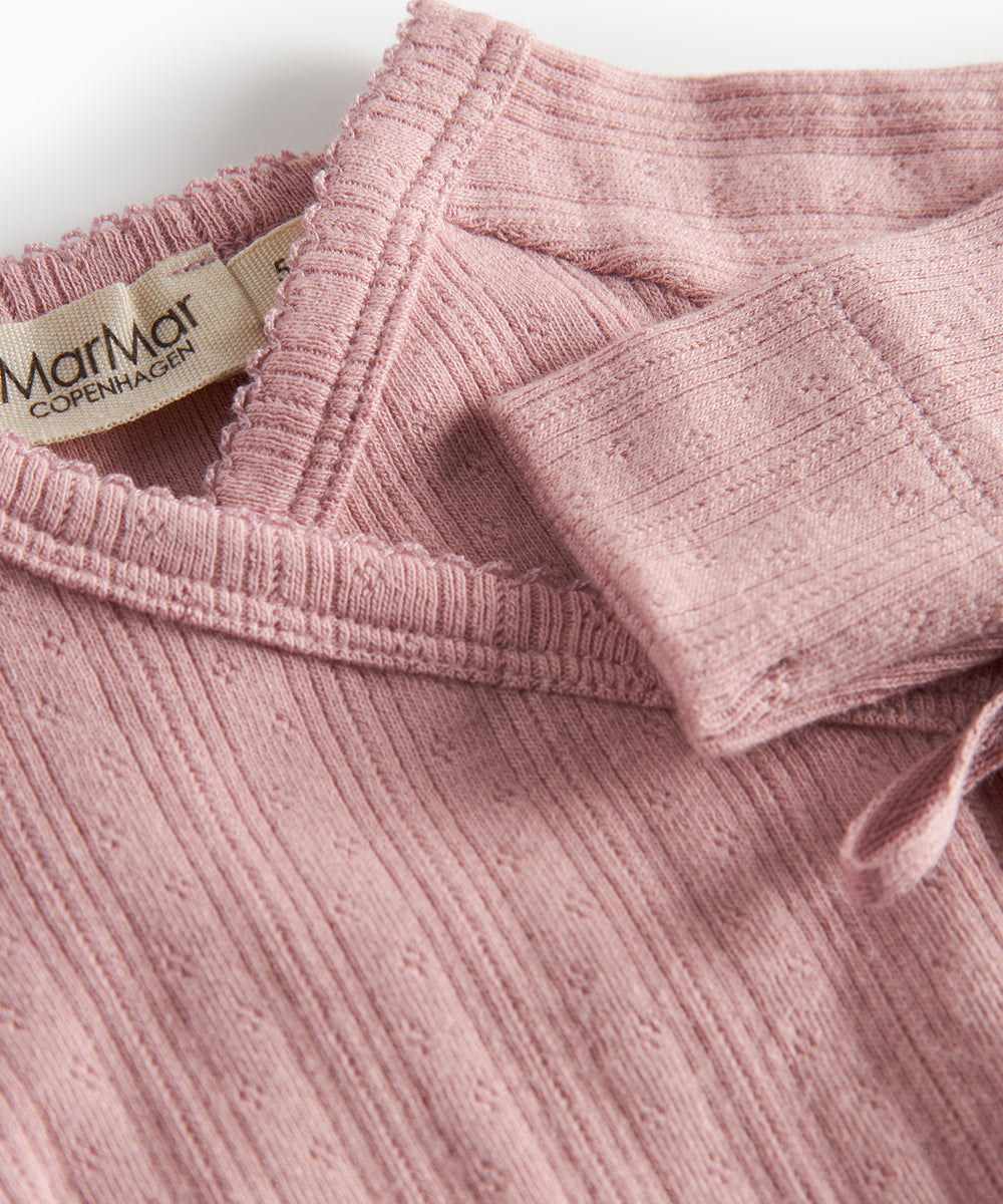 Støvet rosa ribstrikket body med lange ærmer til baby