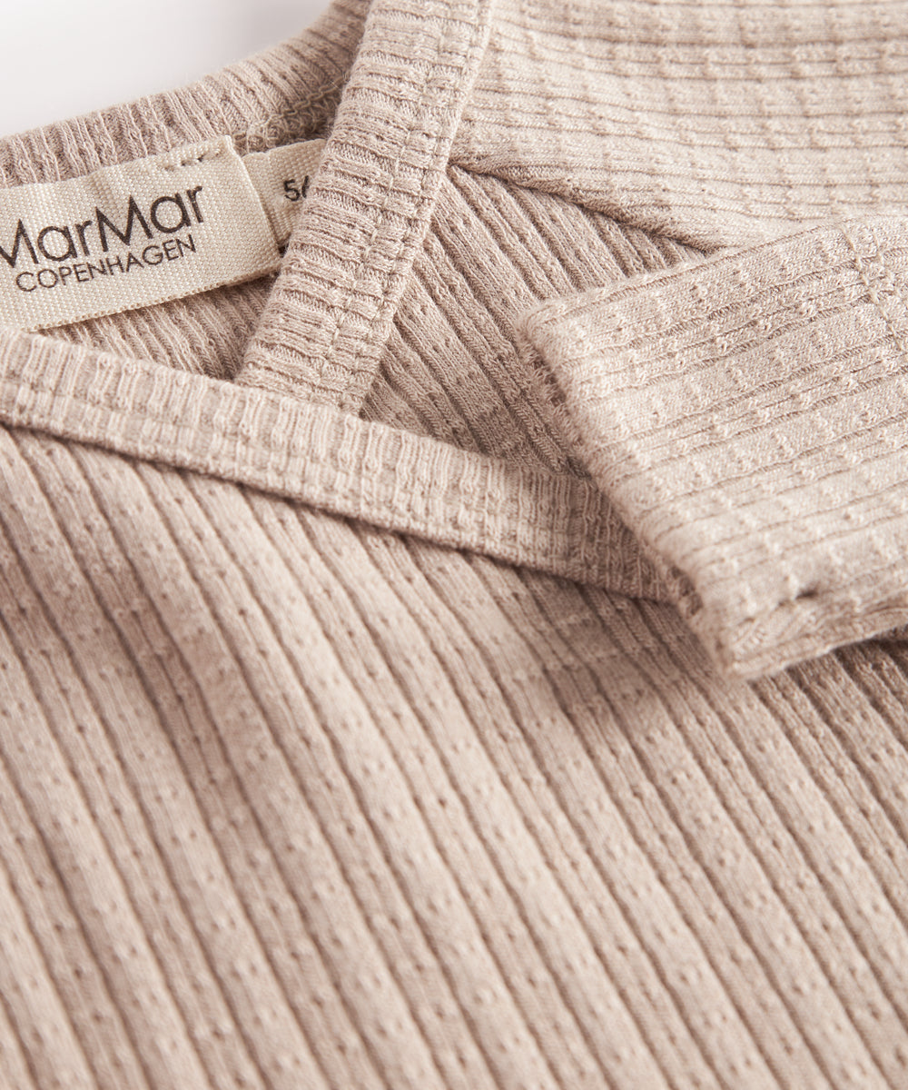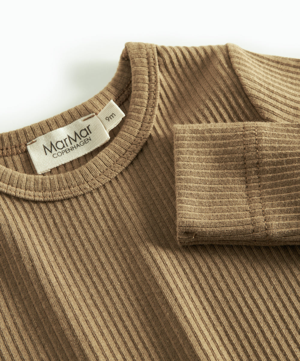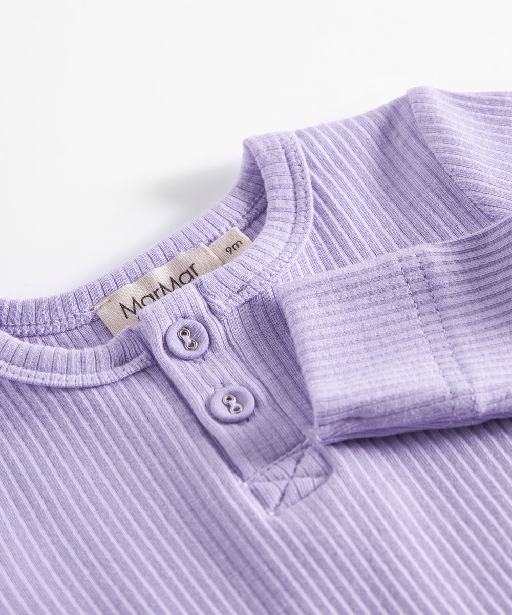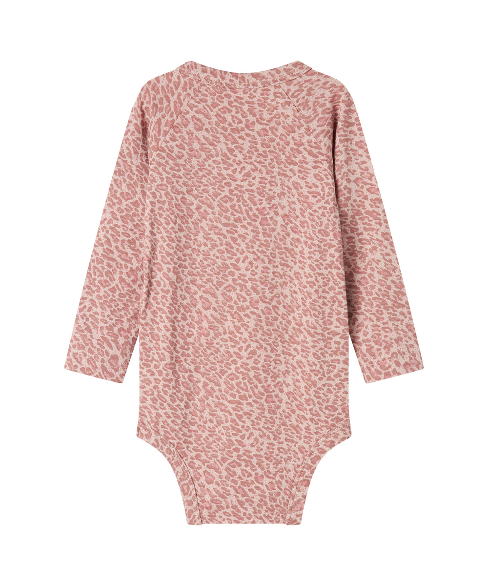 Støvet rosa ribstrikket body med lange ærmer til baby