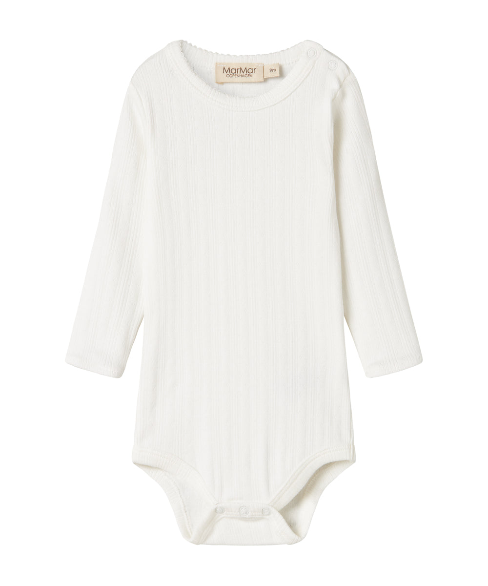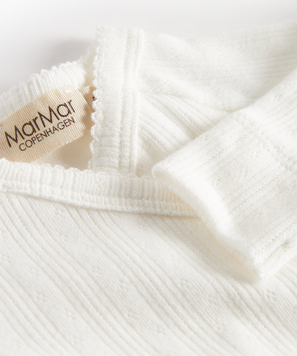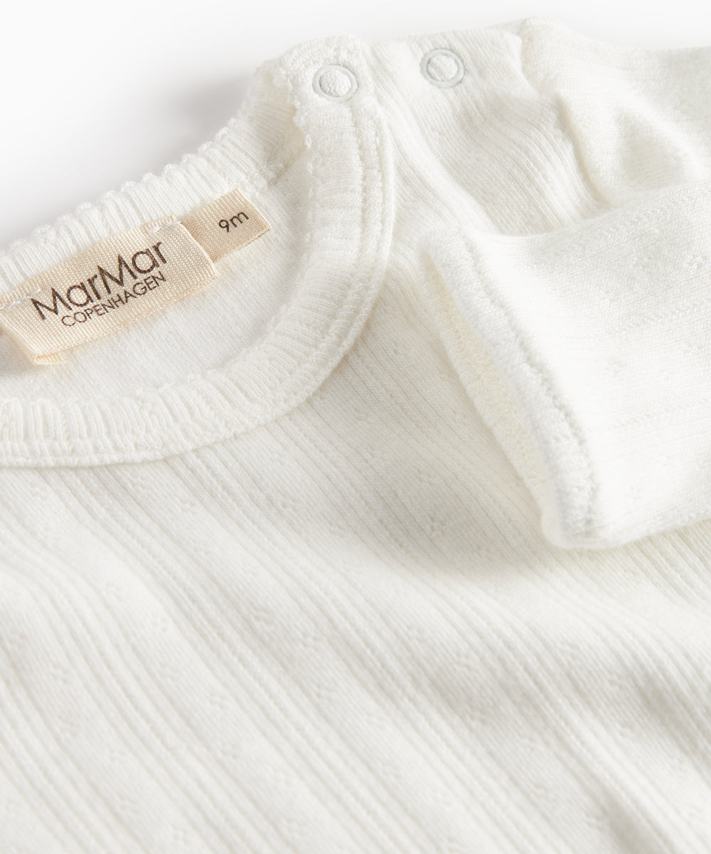 Hvid bodystocking med krave og fine blomsterbroderier til baby