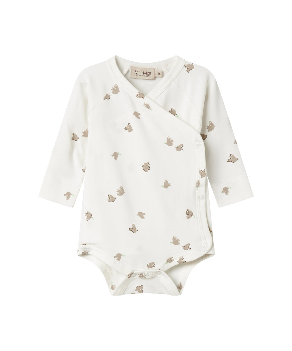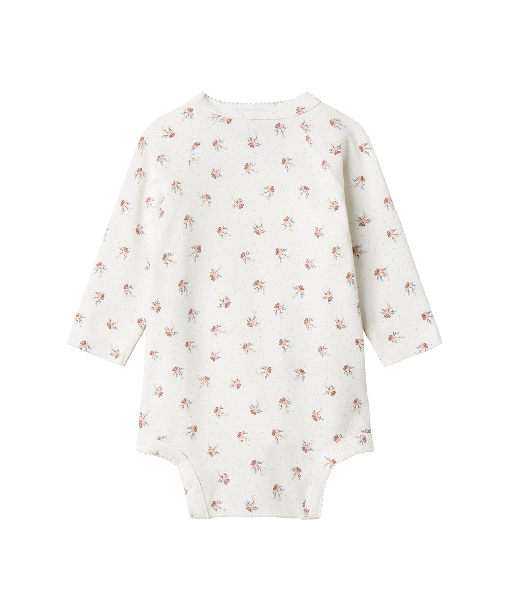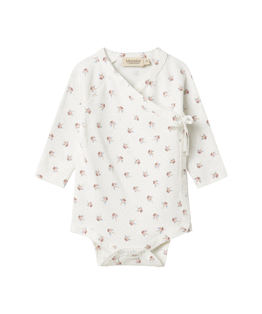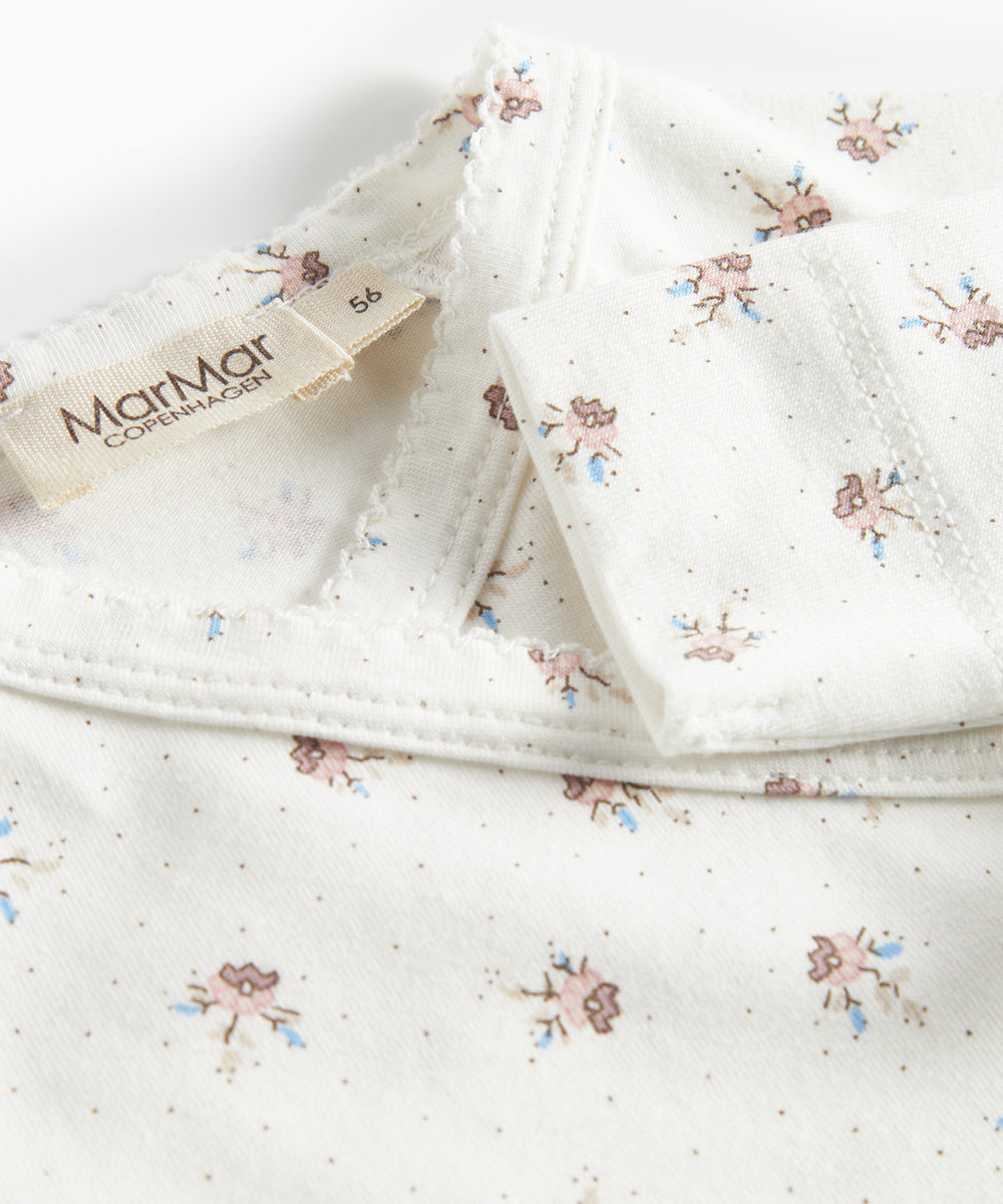 Hvid bodystocking med krave og fine blomsterbroderier til baby