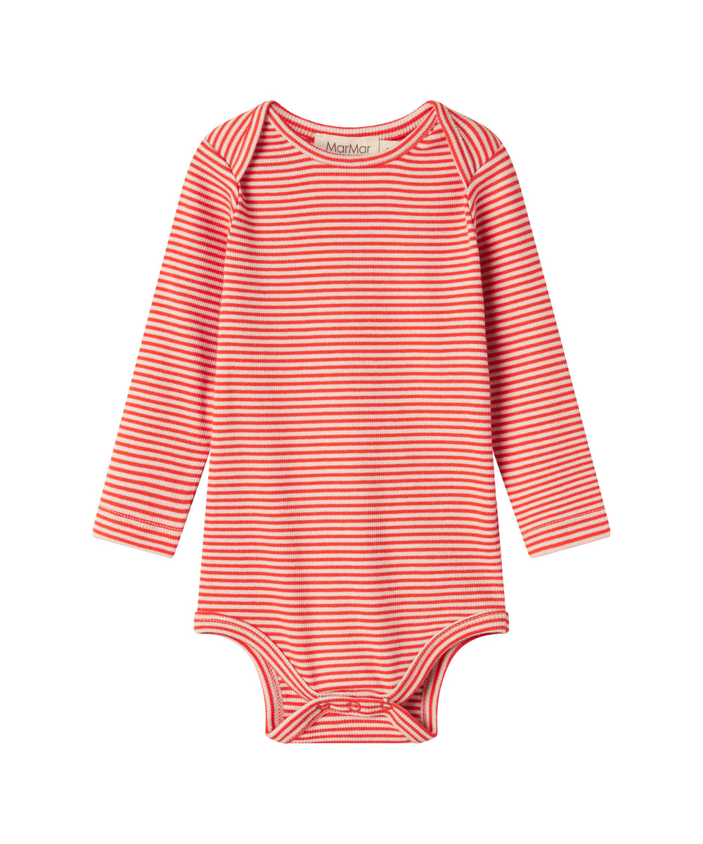 Rød ribbet body med stolpeknaplukning til baby