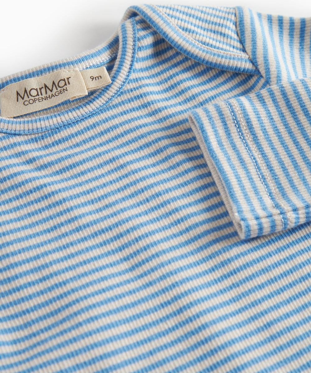 Lyseblå langærmet body til baby i merinould