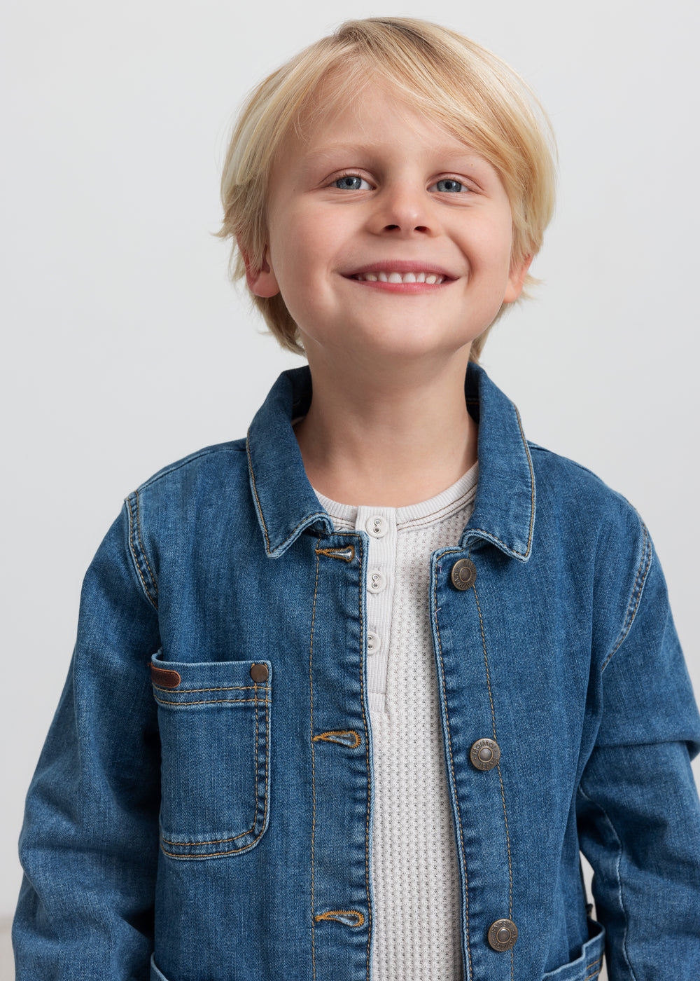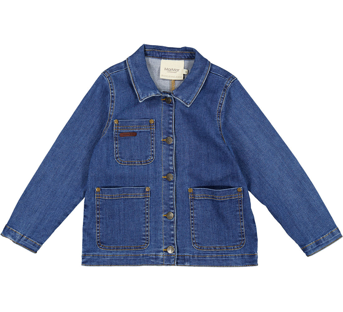 Denim jacket with collar and three large pockets in the front. The denim jacket closes with buttons in the front and is the perfect basic cowboy jacket for the wardrobe