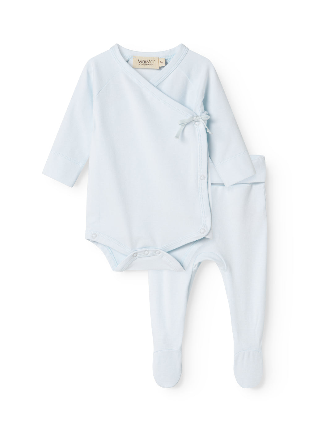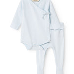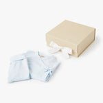 Gift box containing a newborn set consisting of bodystocking and pants.
