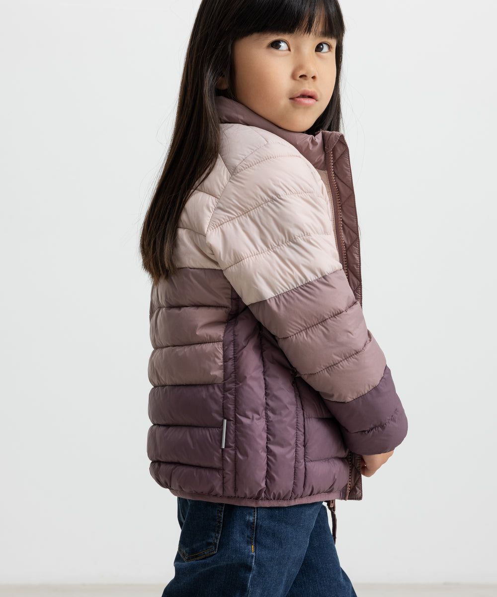 Owe Jacket, Vegan Down Jacket - Plum Shadow Block
