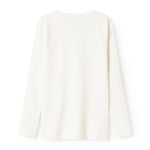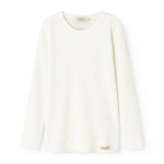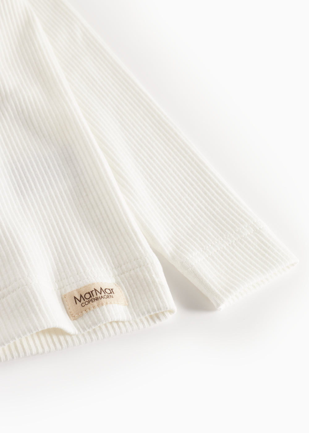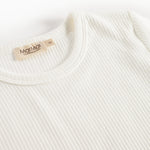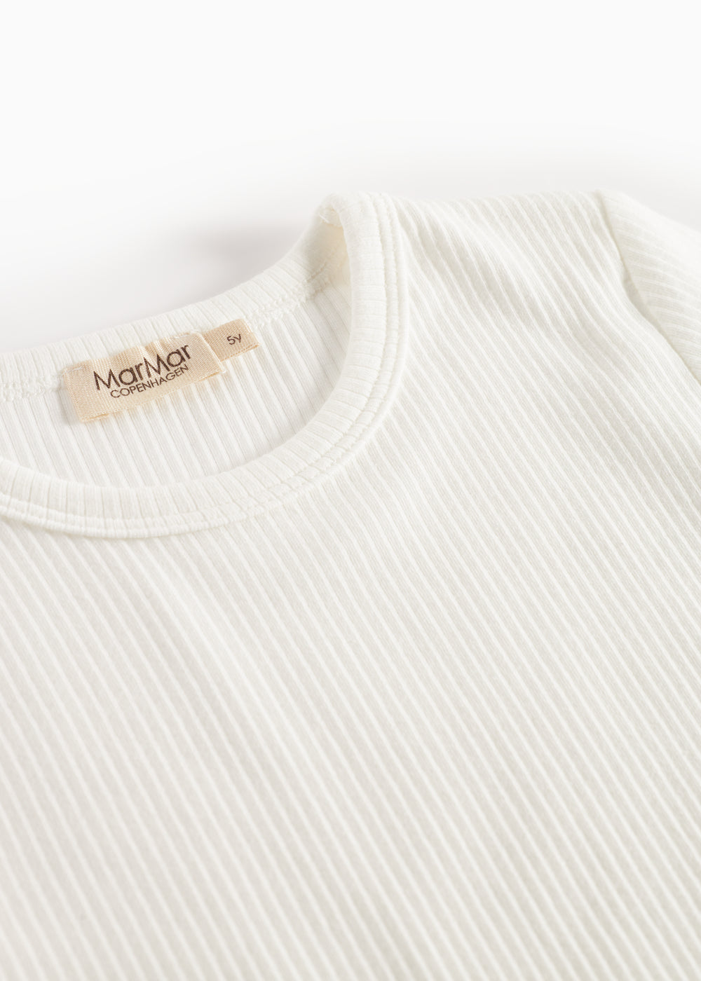 The T-shirt is ribbed, soft, holds its shape and color and has elastane in it, which makes it stretchy and comfortable to wear.