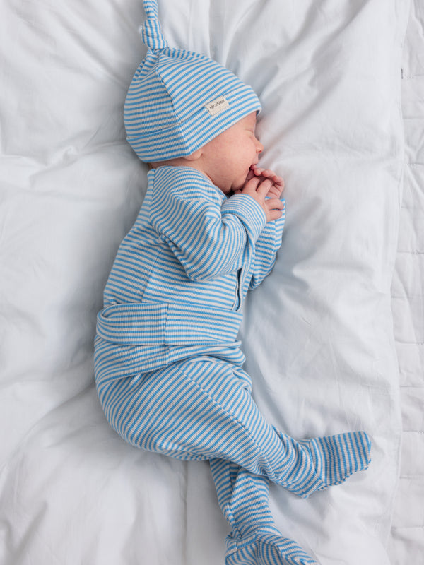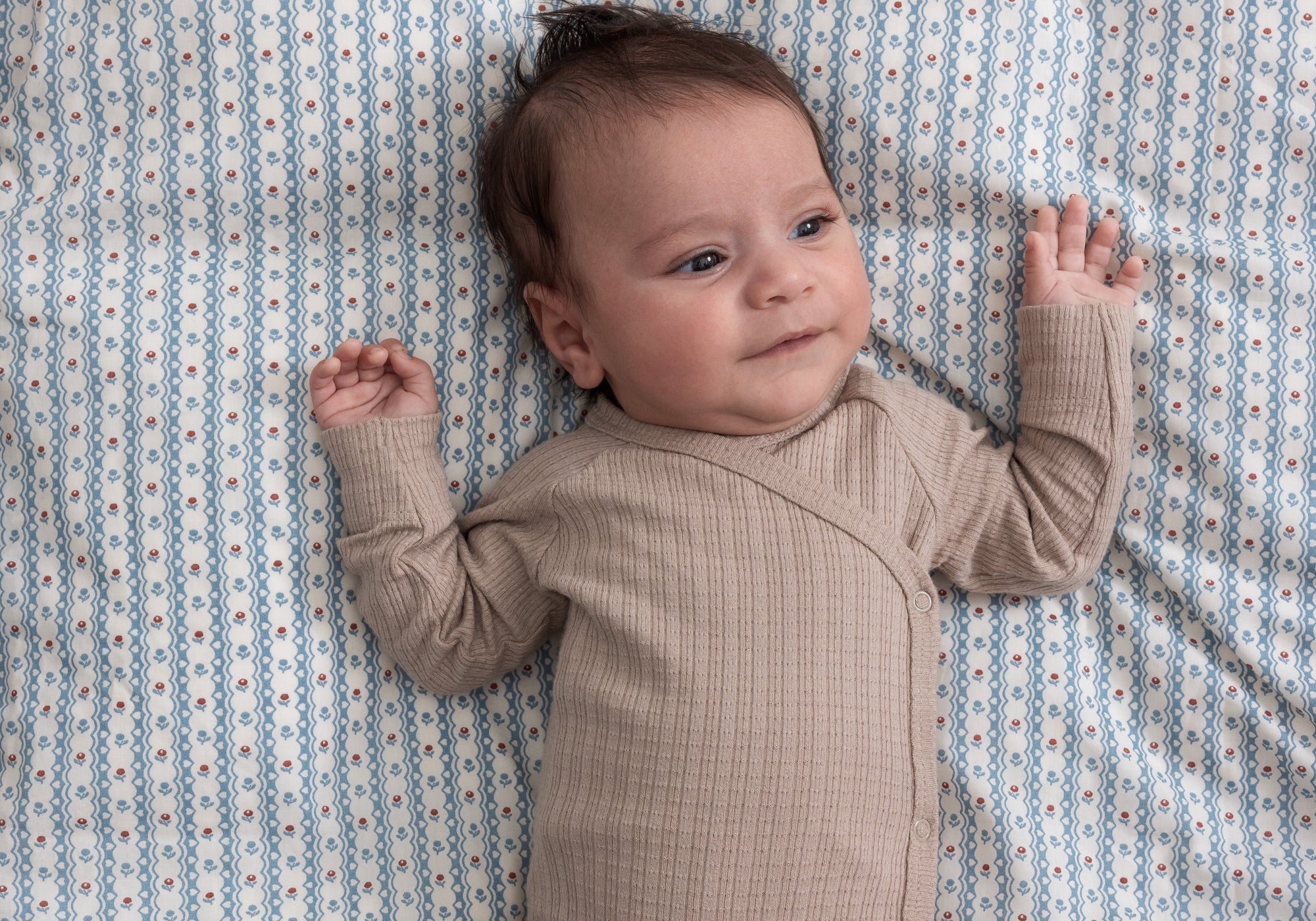 Bodies, blouses, and rompers are designed with wrap-around closures, so the clothes are as easy to get off as on the newborn.