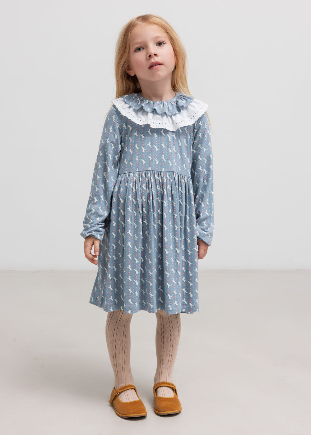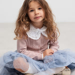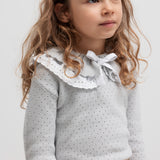 Beautiful decorative collar with embroidered lace pattern. The collar closes at the front by tying a bow.