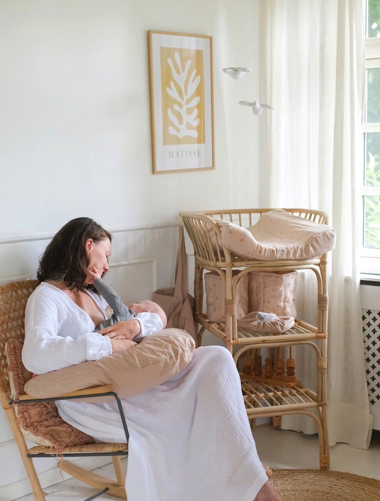 It is easy to maintain the good properties of Fossflakes products. Simply shake the pillow to maintain its volume. Washing instructions: Machine wash at max 60°C. Avoid using fabric softener and detergent with enzymes to wash the Fossflakes nursing pillow, as this can impair the properties of the filling. Drying instructions: The pillow can be air-dried or tumble-dried at low heat (wool or silk program). Cannot withstand high heat. Remove the pillow as soon as the machine's drying cycle is complete. If you are in doubt whether your machine can dry on low heat, let the pillow air-dry instead. The filling is distributed evenly and does not clump even after frequent washing.