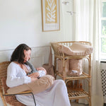 A boomerang-shaped nursing pillow that makes breastfeeding easier - Filled with 70% Fossflakes and 30% polyester fiber balls - Cover in 100% cotton satin with woven star motif - Oeko-Tex certified materials - Free from animal materials - Dimensions: 114 x 70 cm - Color: White - Fits perfectly with our nursing pillow cover - Style No.: FA-ST-NUR0