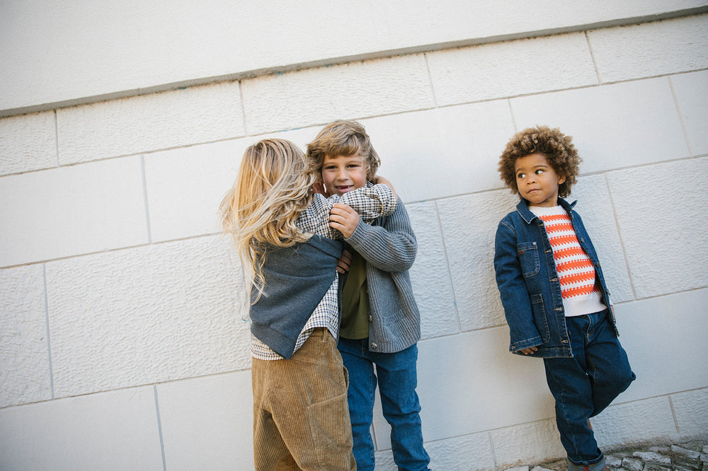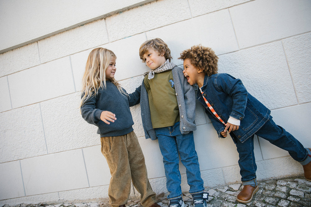 Denim jacket with collar and three large pockets on the front. The cowboy denim jacket closes with buttons at the front and is the perfect basic jacket for the wardrobe