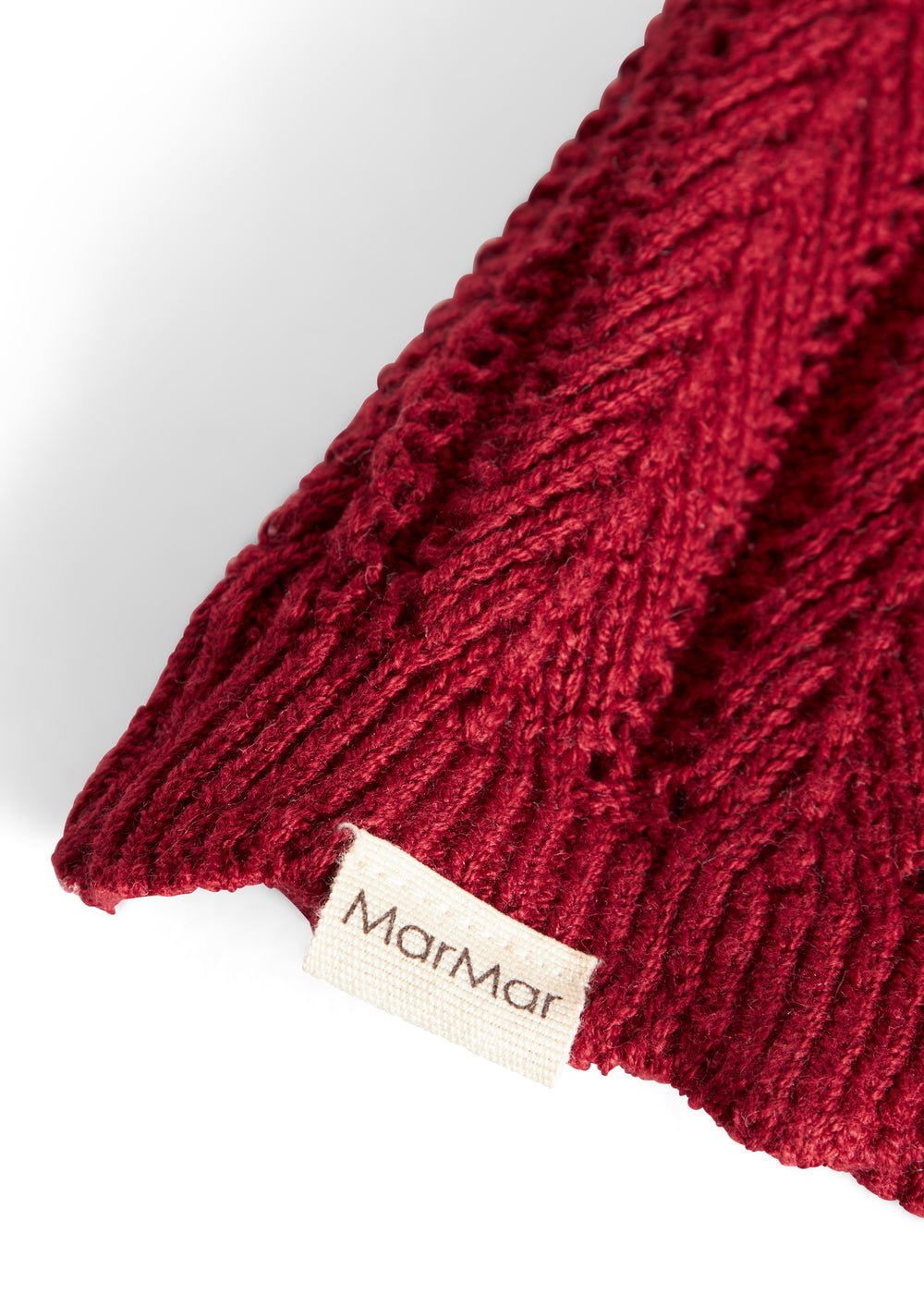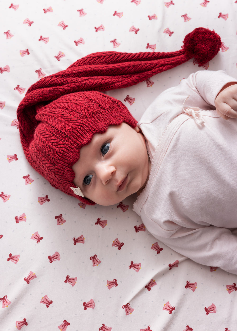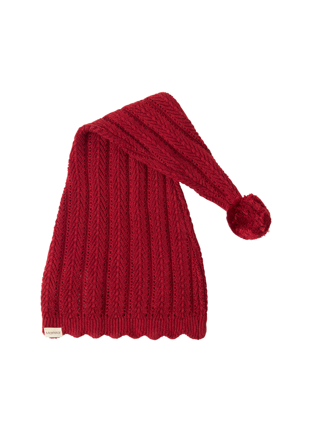 Santa hat with tassel knitted with fine lace details. The Santa hat is both soft and comfortable to wear.