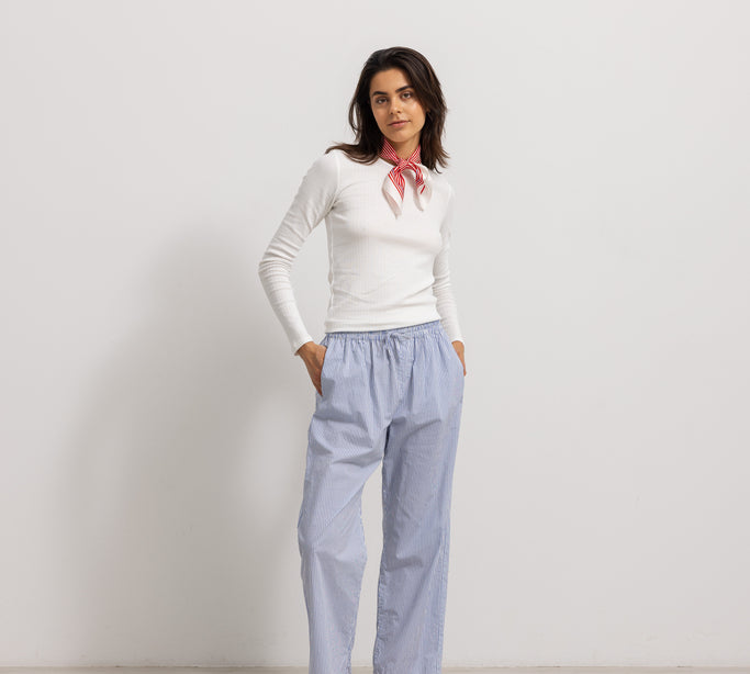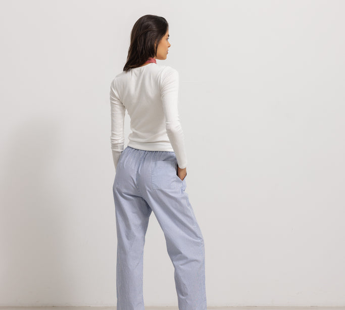 Tatum W, Shirt - Dusty Blue Stripe