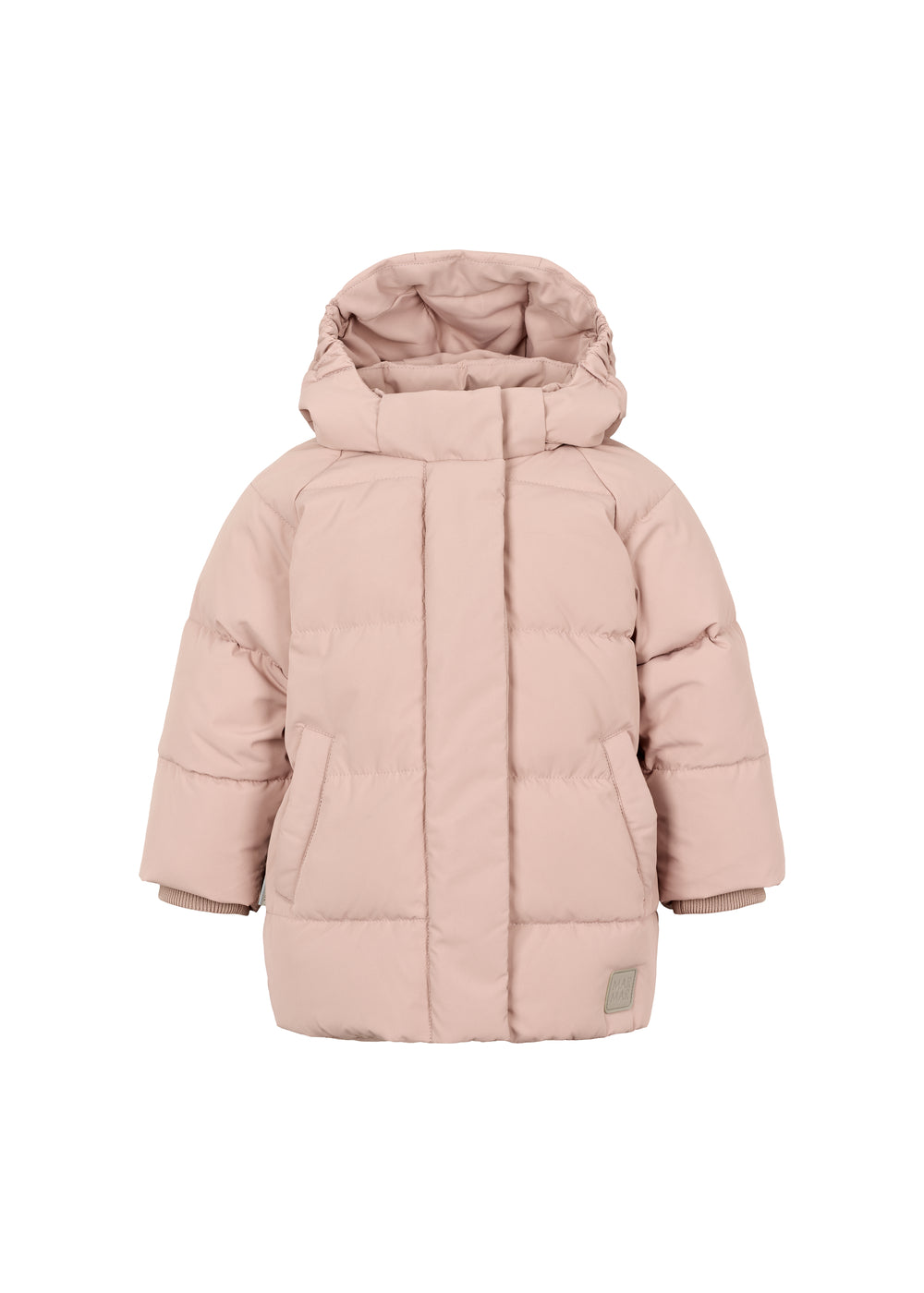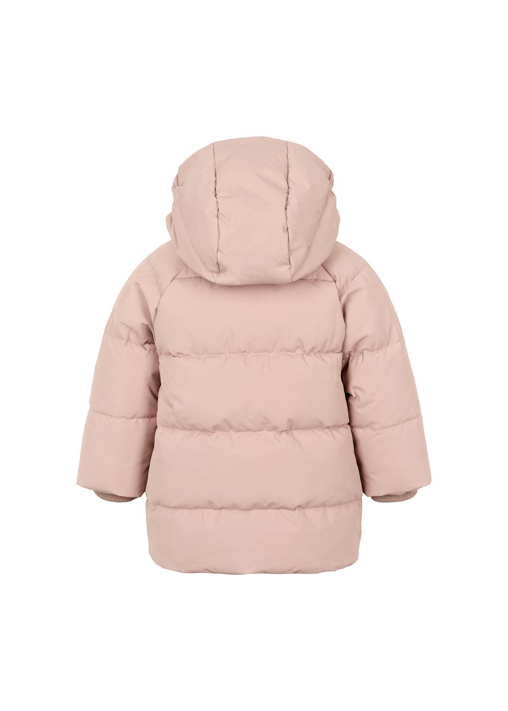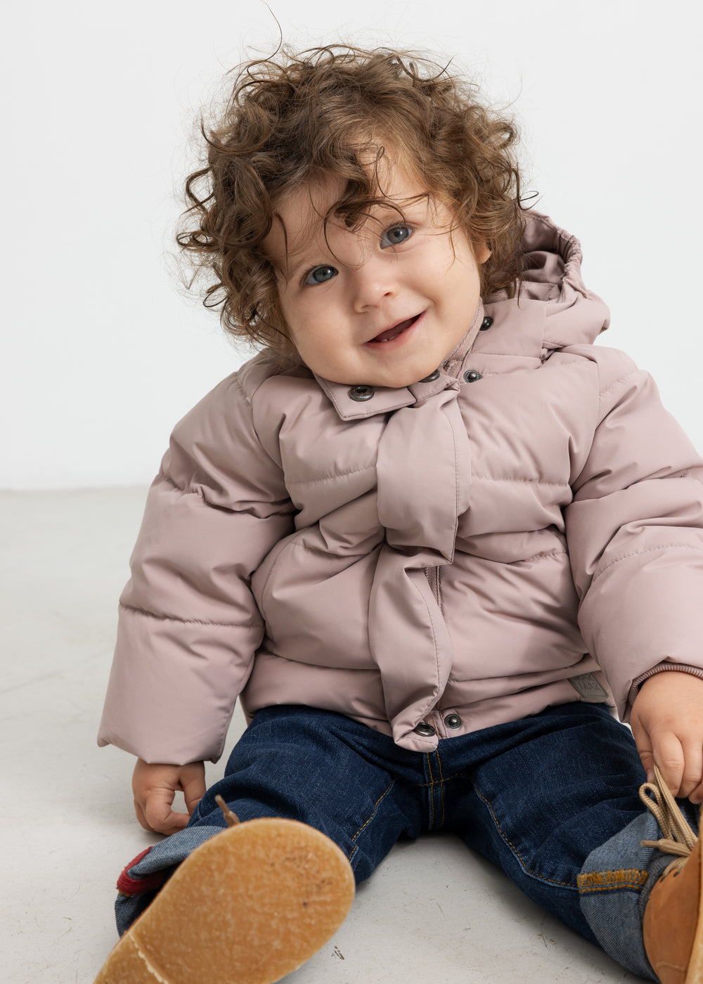 Down jacket for the little ones, designed to keep the child warm and comfortable during the cold months. The jacket has a removable hood, two functional slanted side pockets where the hands can be kept warm or small items can be stored. The down jacket closes with a hidden zipper closure at the front with a wide storm flap that closes with press studs, which provides extra protection against wind and cold. The jacket fits tightly around the wrists, so no cold penetrates. The down jacket is ideal for both everyday use and outdoor activities where the child needs a warm, durable and stylish jacket.
