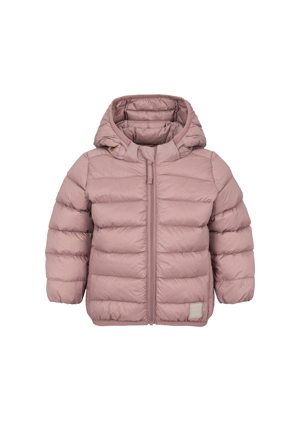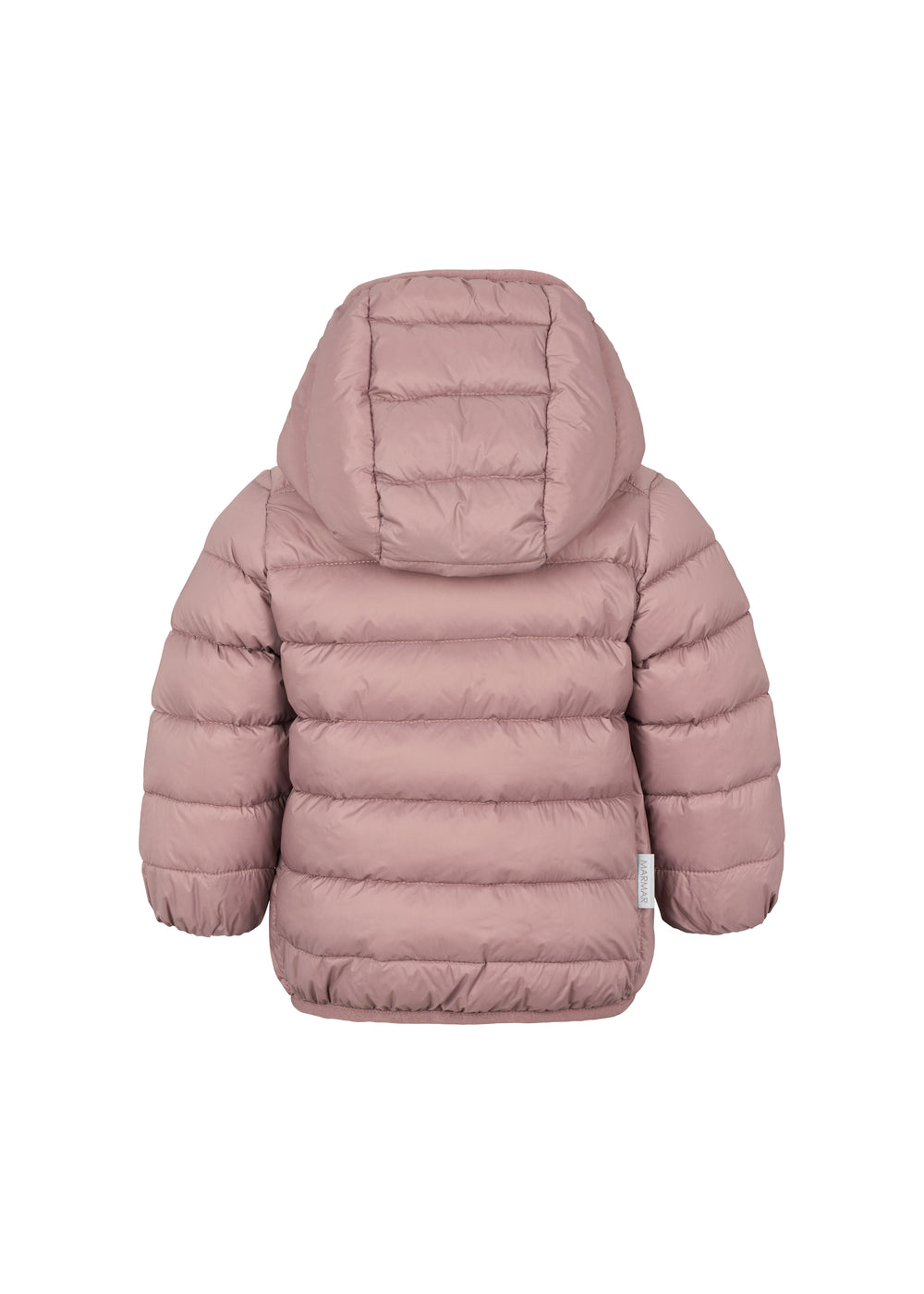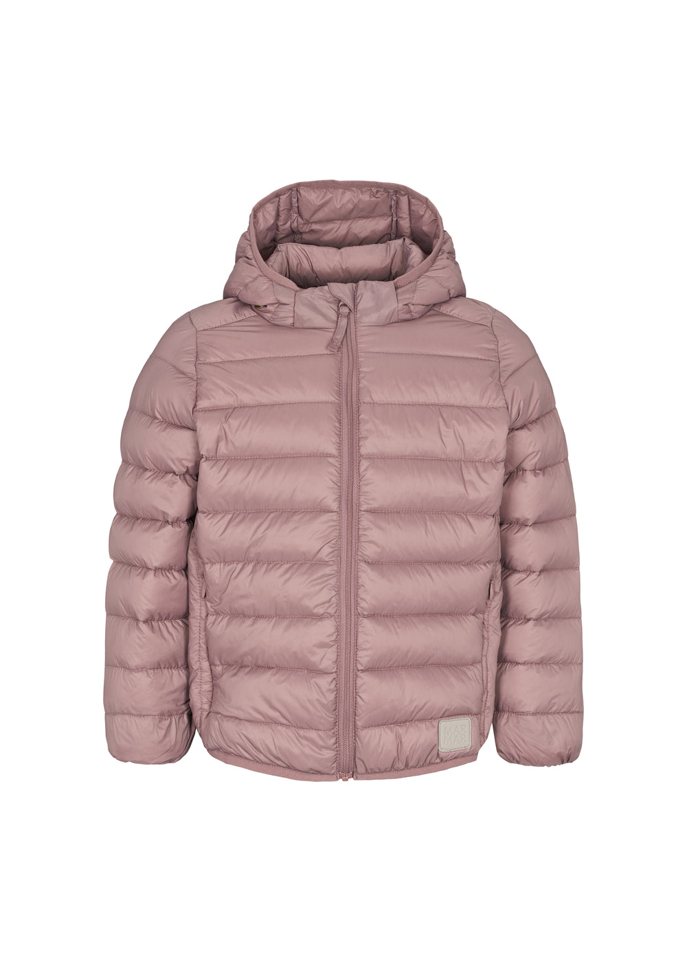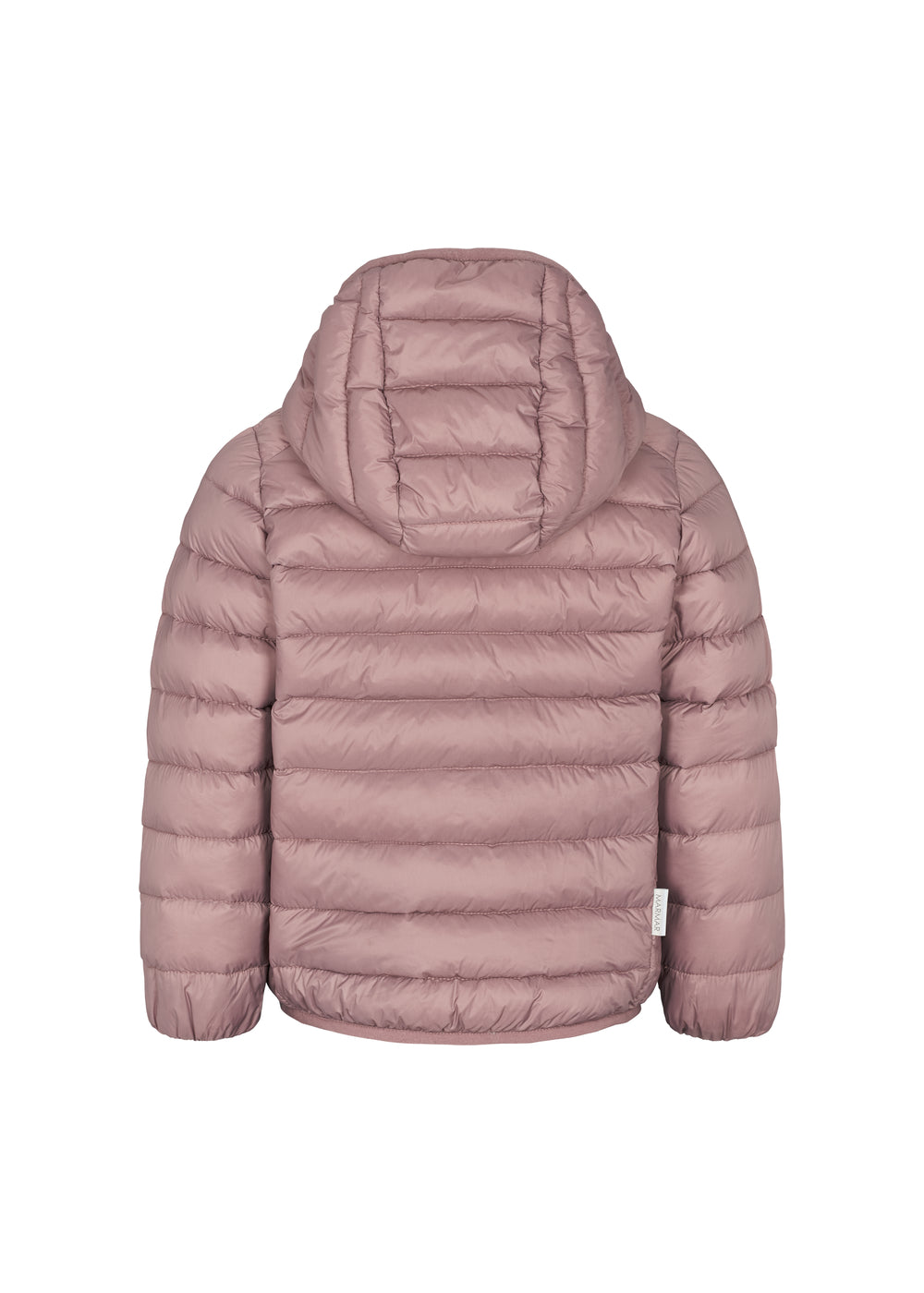 Children's down jacket in a lightweight quality, perfect for cool days. The down jacket has elastic bands on the sleeves and body, pockets on both sides with hidden zippers and a high collar. The down jacket has a removable hood and is suitable for both everyday use and outdoor activities.