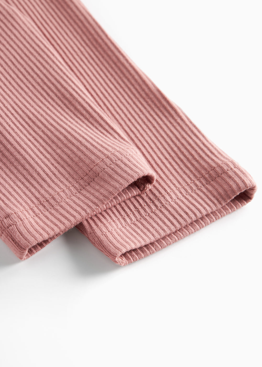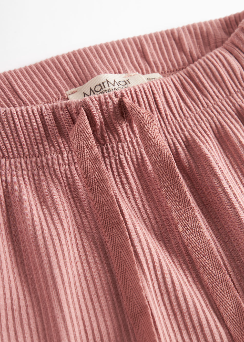 Lyserøde ribstrikkede bukser med snøre i taljen til børn