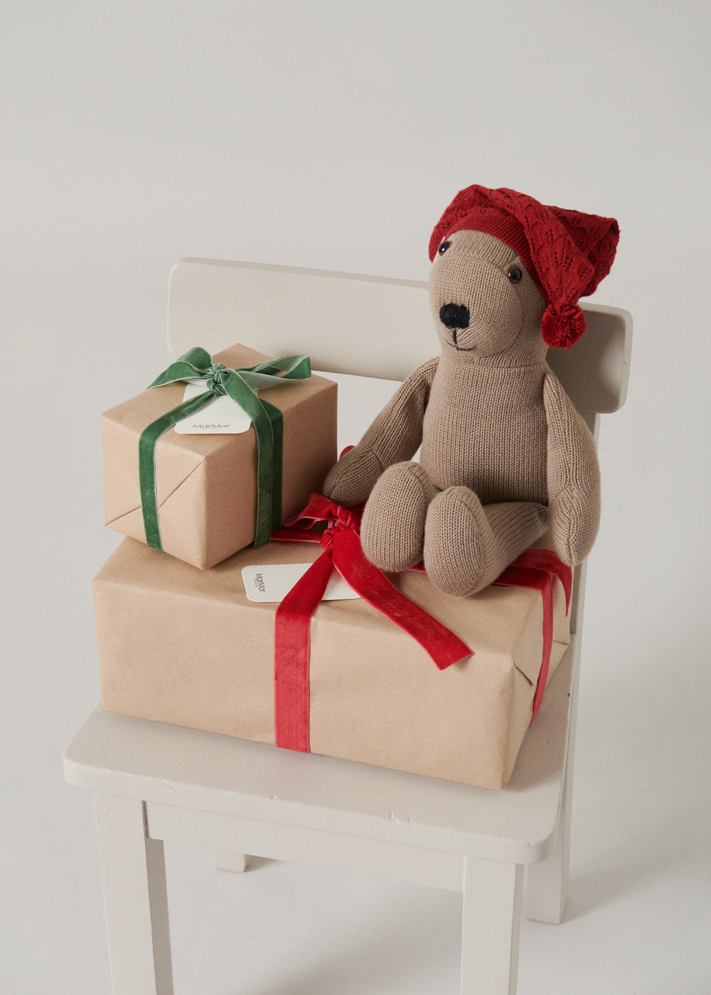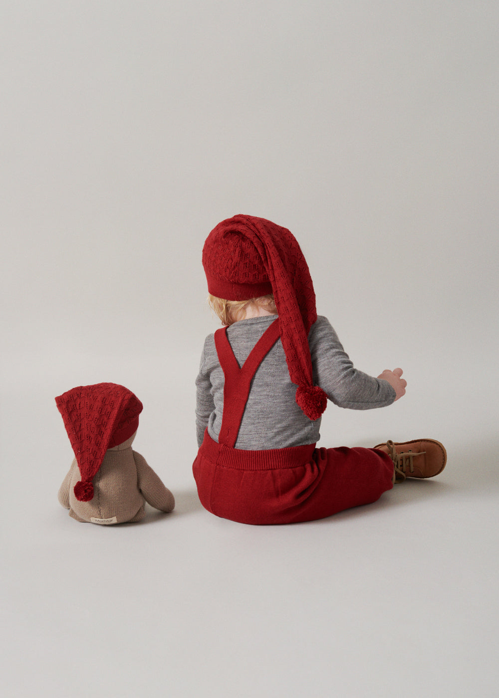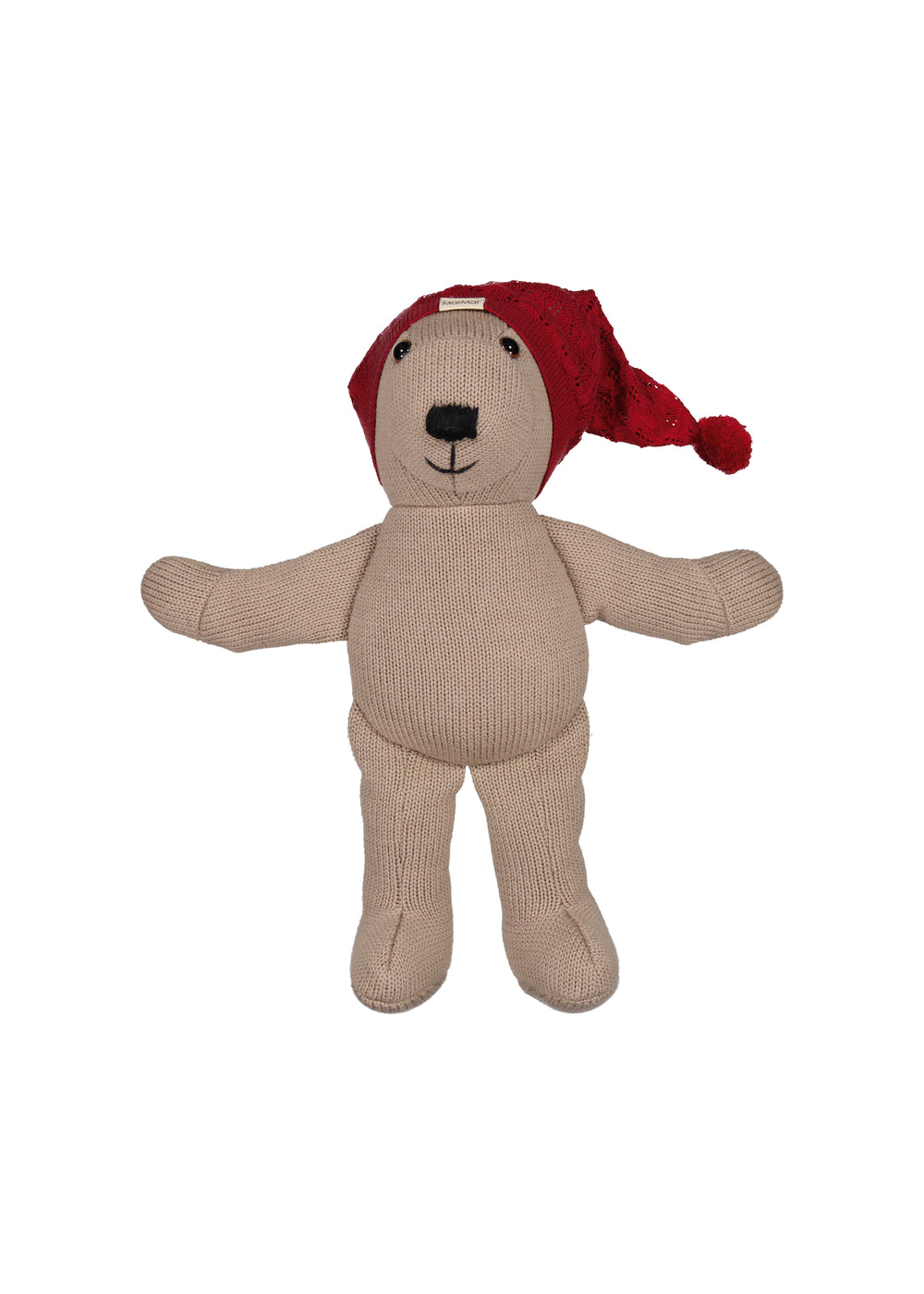 Santa hat for teddy bear in knit with lace details. The Santa hat fits perfectly with our soft teddy bear Teddy. Please note that the teddy bear must be purchased separately. Find it here.