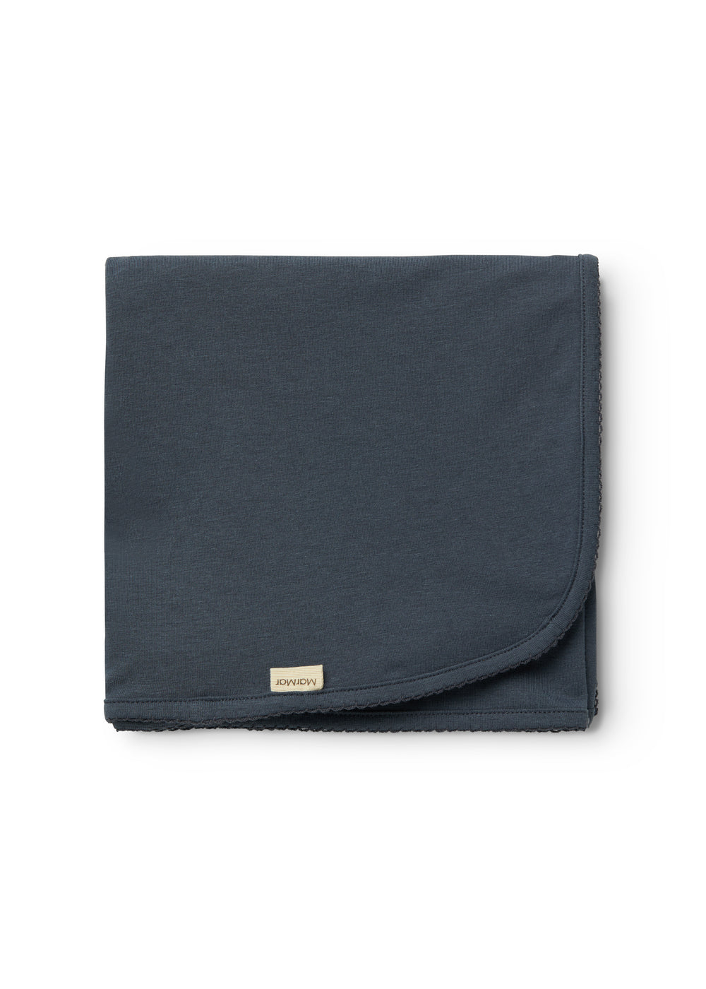 Baby blanket with rounded corners. The blanket measures 80 x 80 cm. The blanket is soft, keeps its shape and color and has elastane in it which makes it stretchy and comfortable.