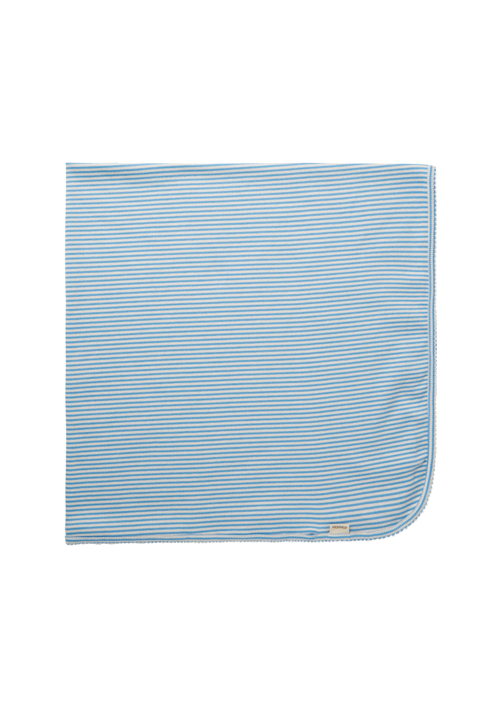 Baby blanket with stripes, picot edges and rounded corners. The blanket measures 80 x 80 cm.