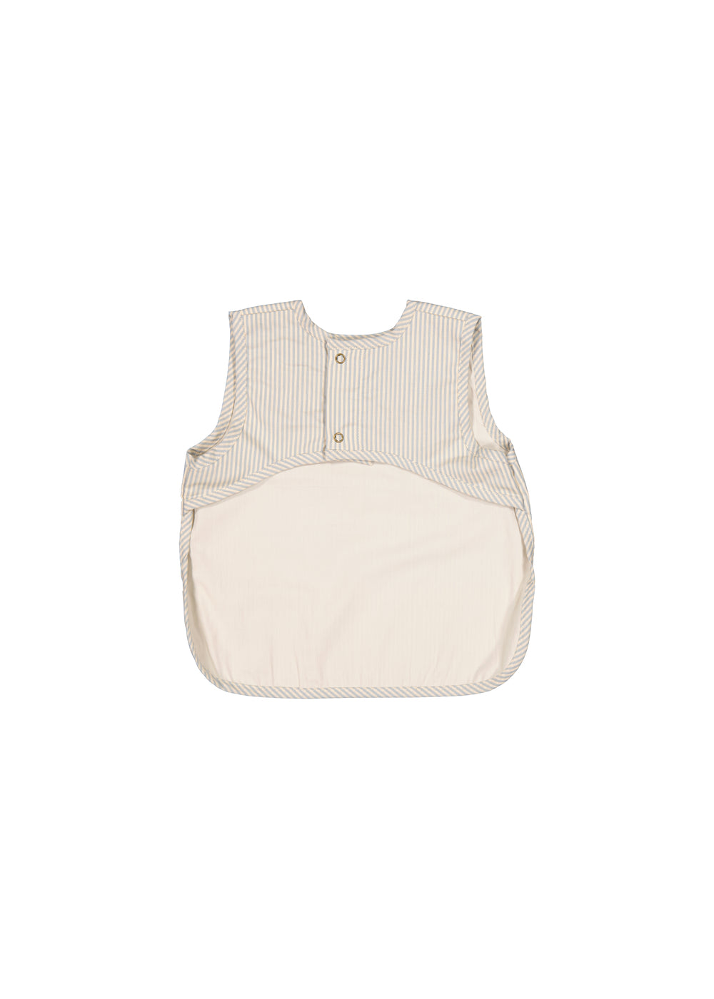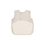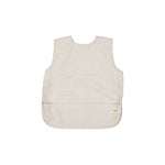 Sleeveless apron with button closure at the back. The apron has a water-repellent coating so it is easy to wipe off.