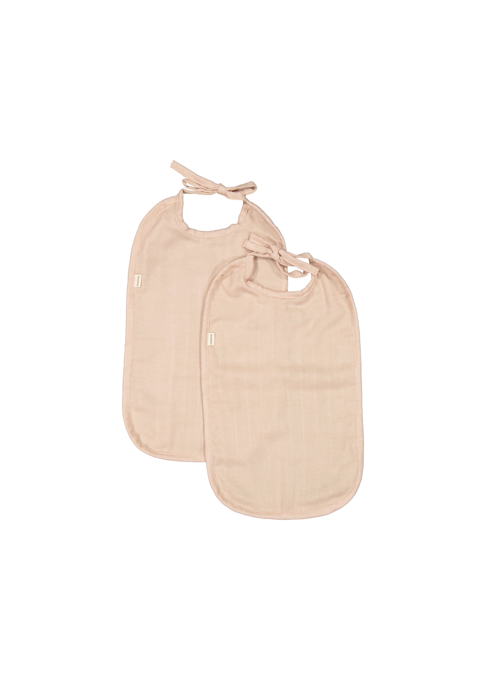 2-pack long bibs with ties. Measures W:26 x H:45cm