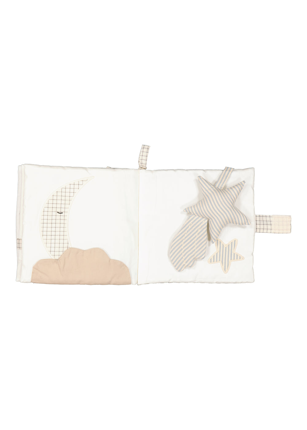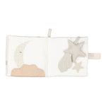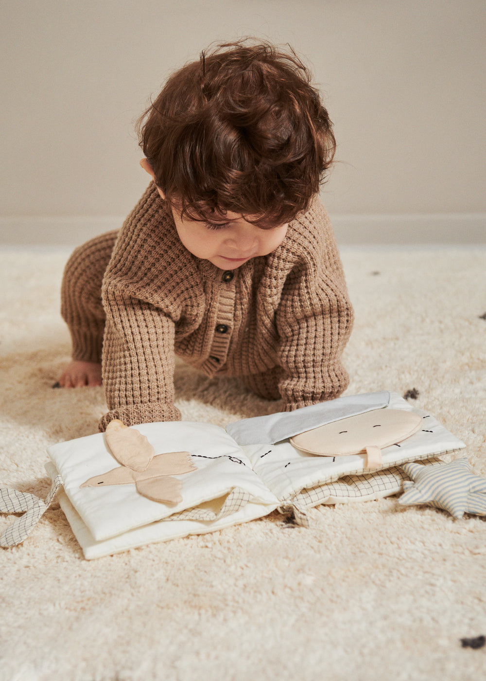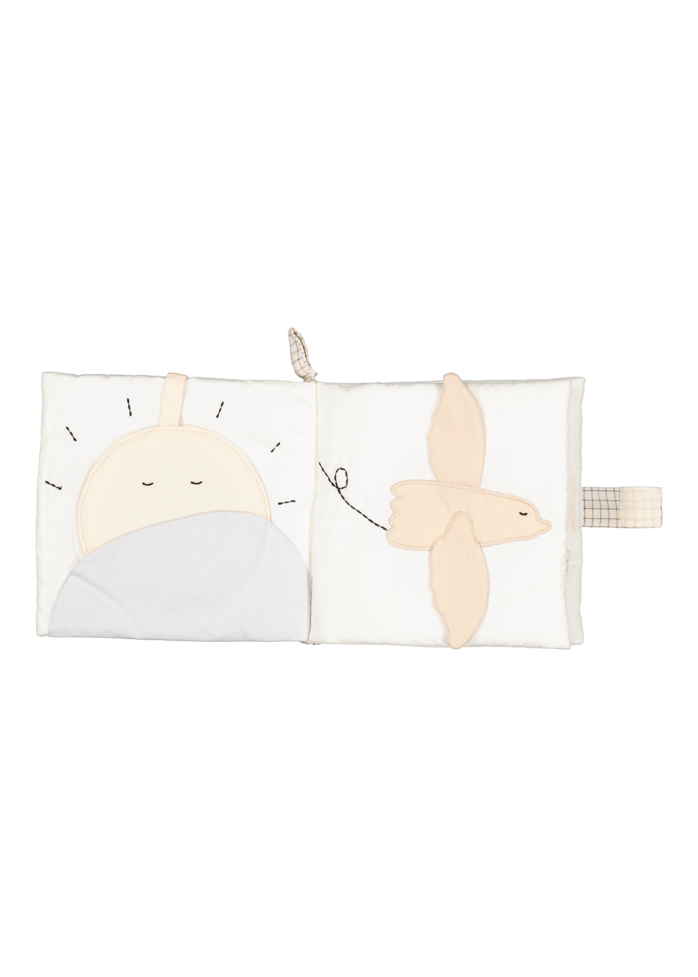 Soft activity book with cute illustrations from morning, day to night that helps stimulate the child's senses and motor skills. The book has nice contrasts for the very little ones. The book has cute flaps that can be opened and closed, a mirror, a squeaker hidden in the book and various crackling sounds that stimulate the sense of hearing. The book has a strap for attachment. The book measures: H: 16.5 x L: 17 cm. The book can be used from 0+ NOTE: Remove the protective film from the mirror before giving it to the child.
