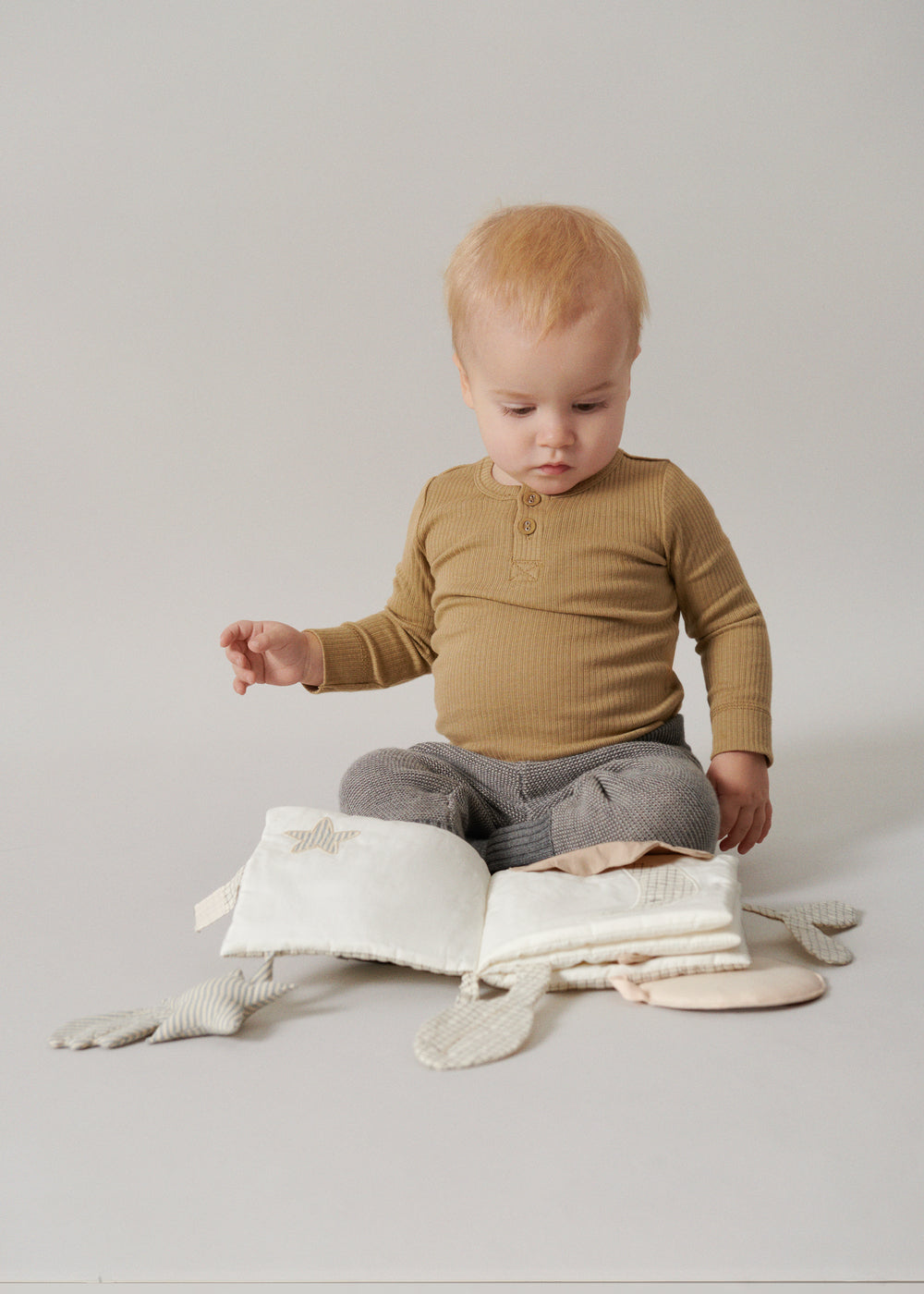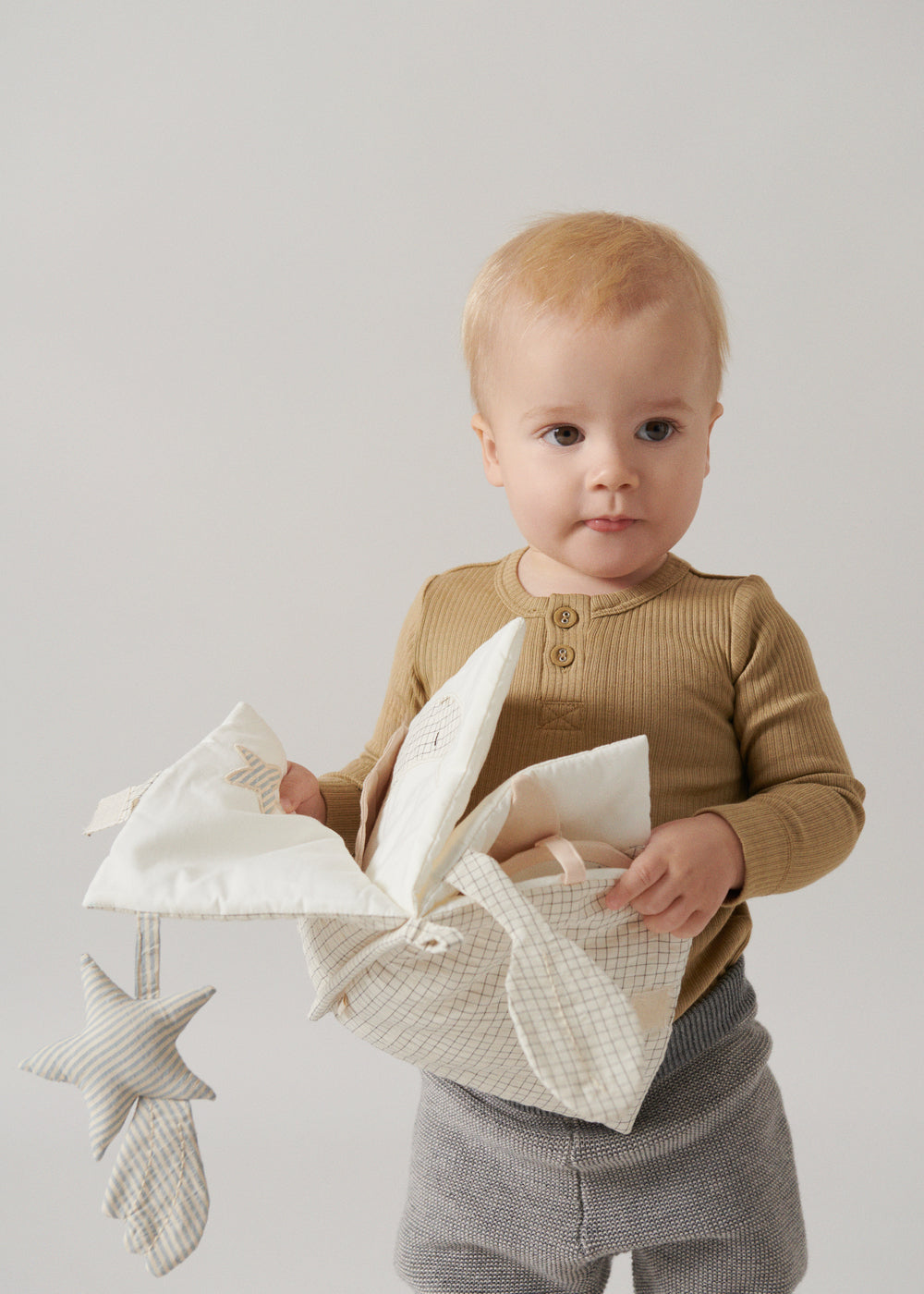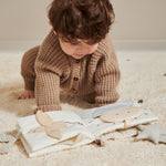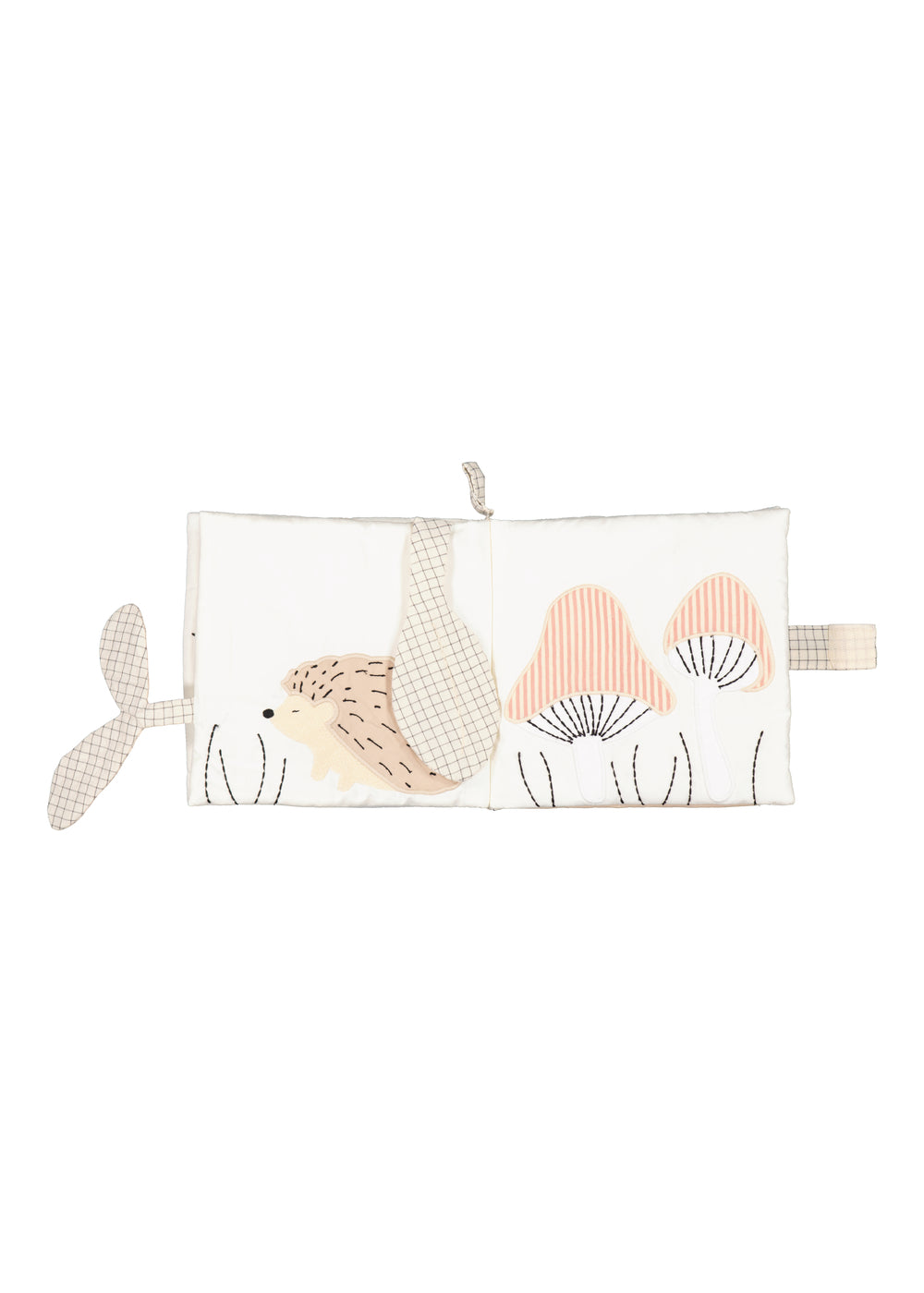 Soft activity book with cute illustrations from morning, day to night that helps stimulate the child's senses and motor skills. The book has nice contrasts for the very little ones. The book has cute flaps that can be opened and closed, a mirror, a squeaker hidden in the book and various crackling sounds that stimulate the sense of hearing. The book has a strap for attachment. The book measures: H: 16.5 x L: 17 cm. The book can be used from 0+ NOTE: Remove the protective film from the mirror before giving it to the child.