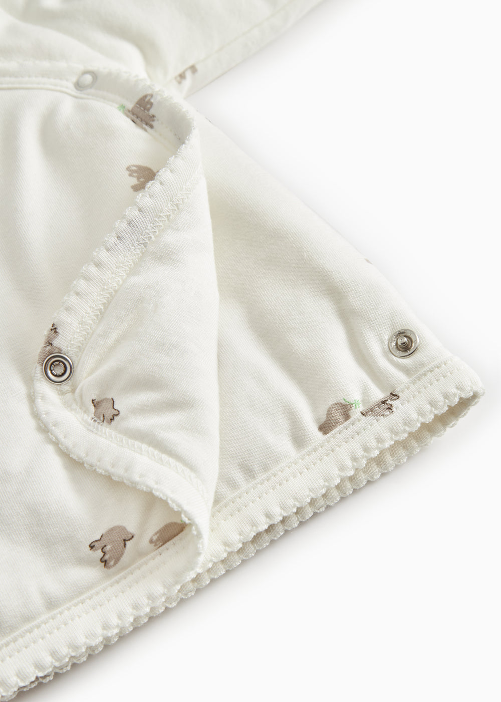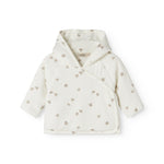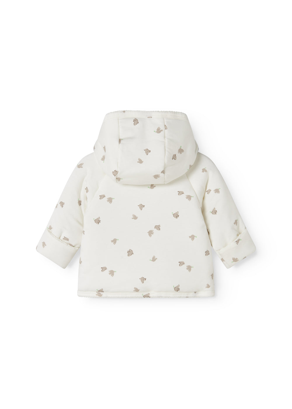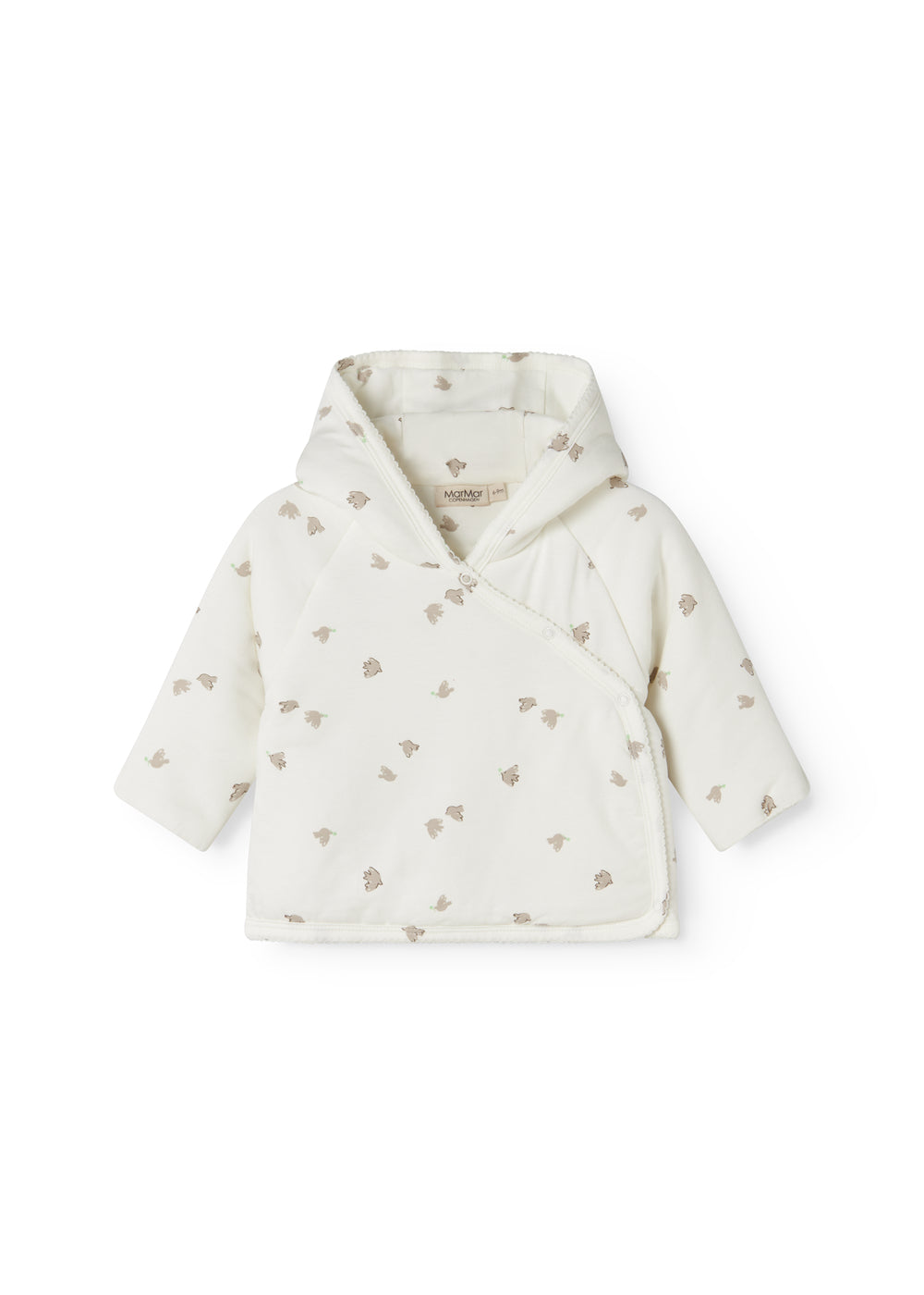 Warm padded jacket for the little ones with a hood and buttoned wrap-around closure. The jacket from 0M-9M has a smart roll-up option on the sleeves to keep the little one warm. The jacket has a nice print and is both soft, stretchy and comfortable to wear.
