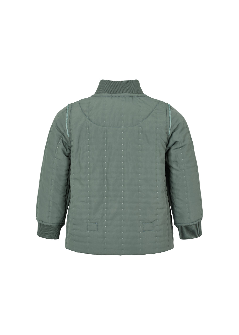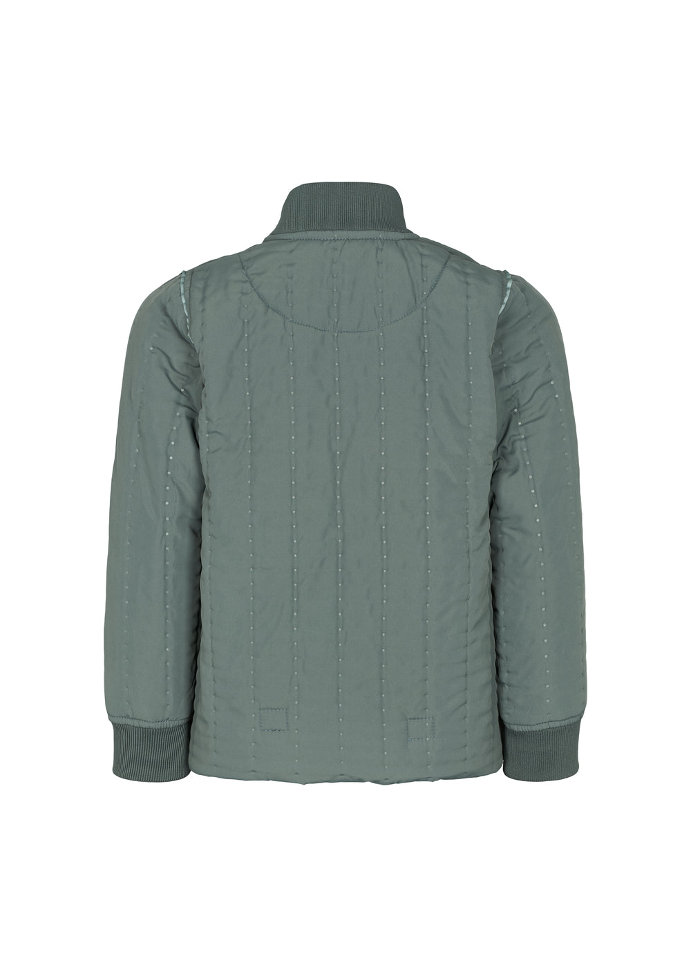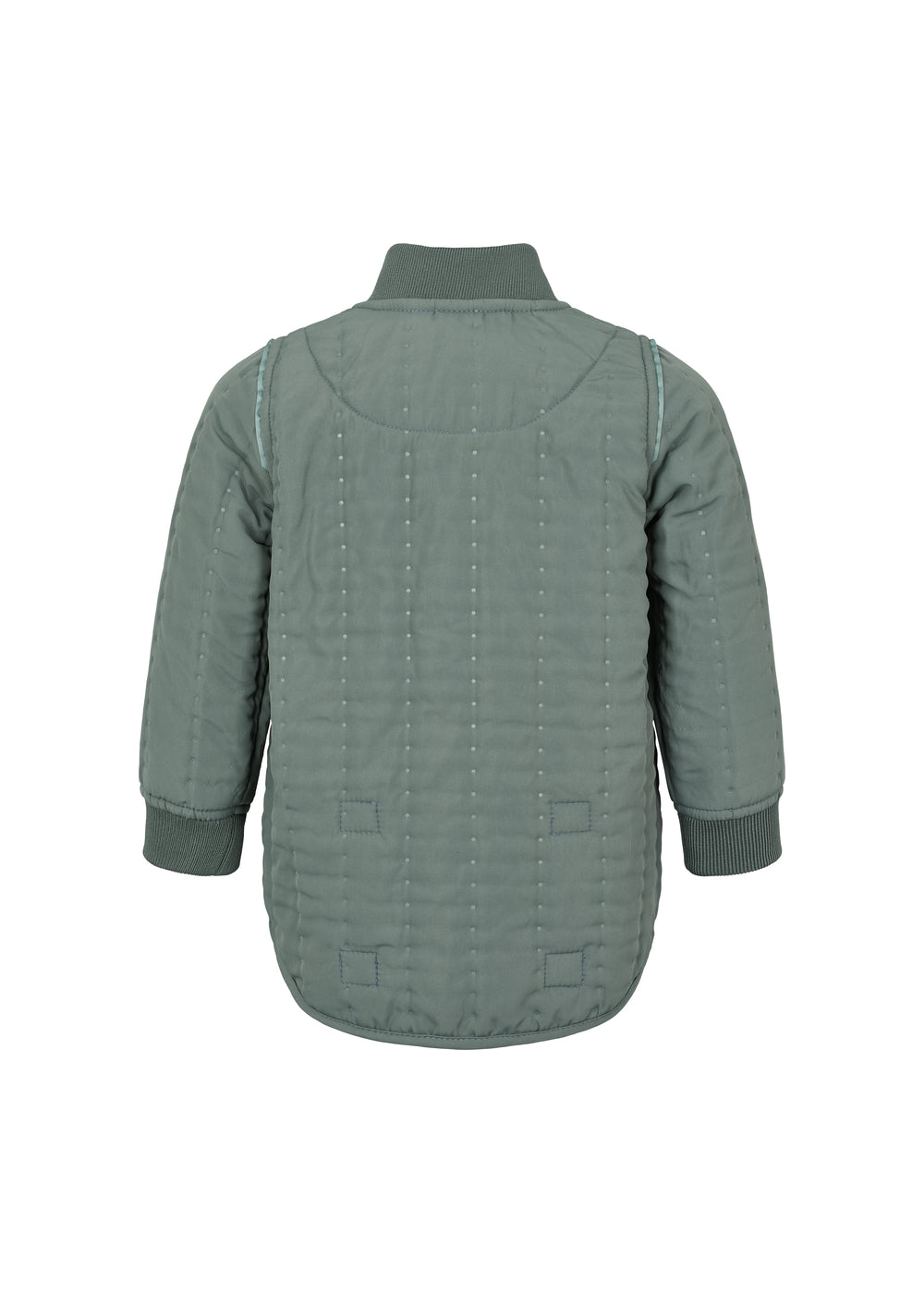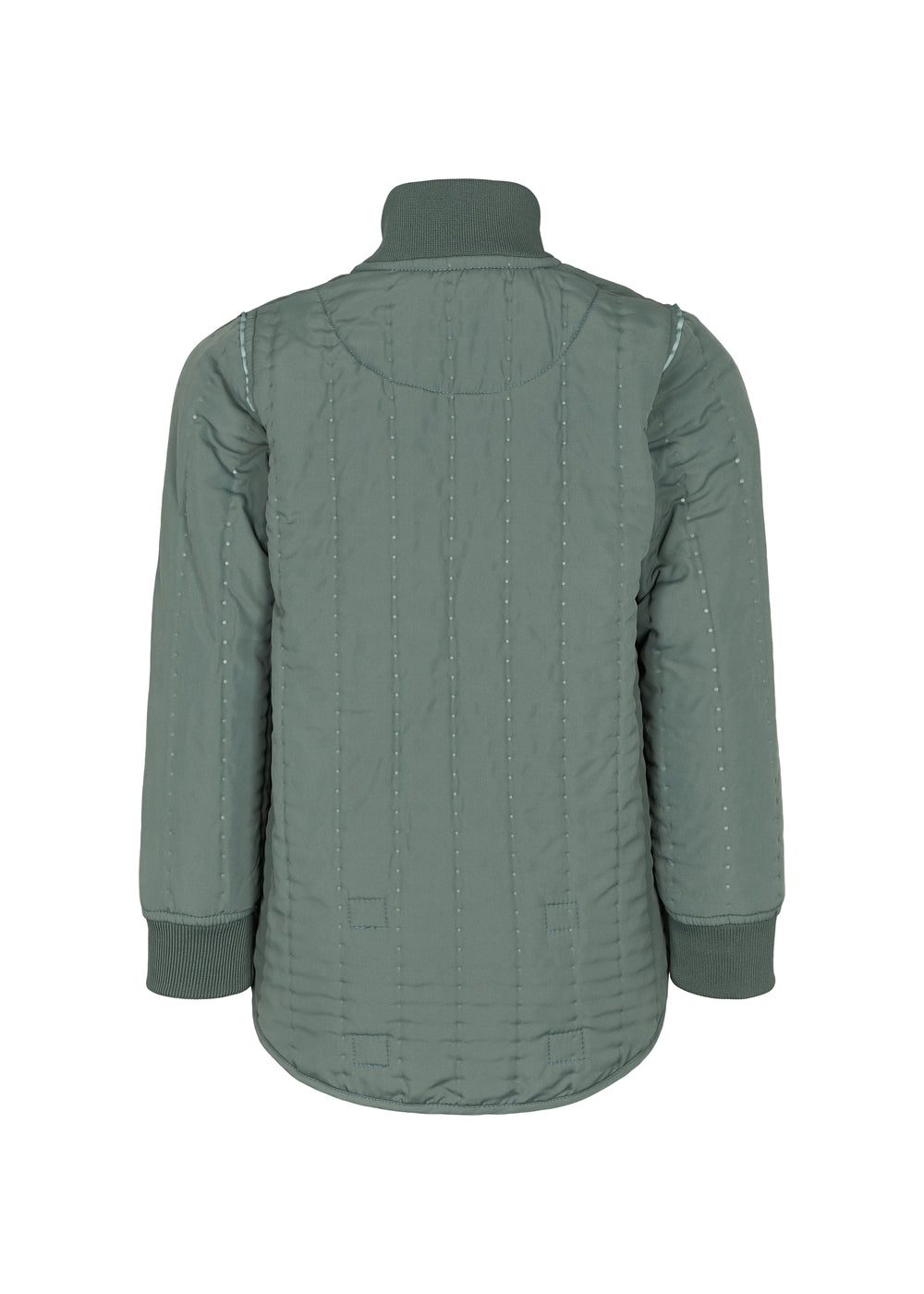 støvet grøn termojakke til børn med lynlås og ribkanter
