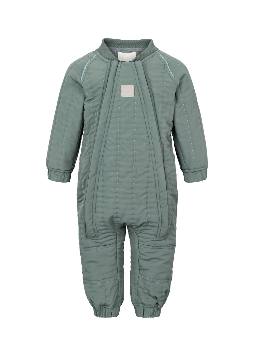 støvet grøn termodragt til baby med lynlås og refleksmærke