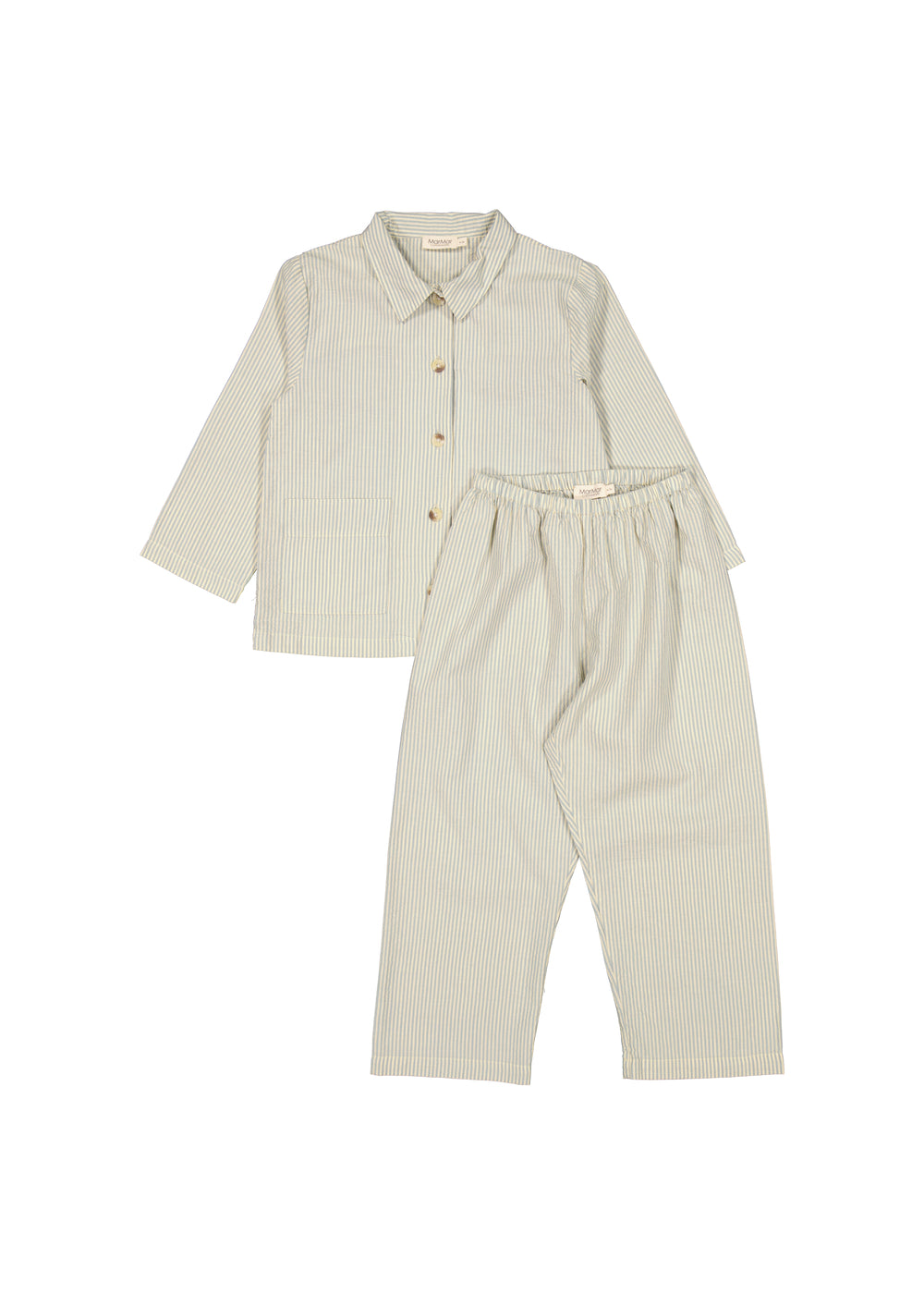 Pajama set with shirt and pants in a loose fit. The shirt has button closure and two pockets at the front and the pants have elastic at the waist.