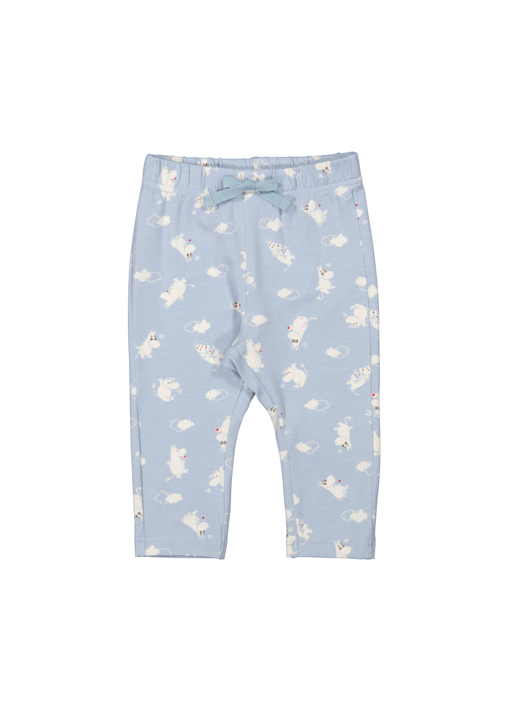 Comfortable pants with a cute Moomin print with elastic and a decorative ribbon at the waist. The pants are soft, stretchy and comfortable to wear.