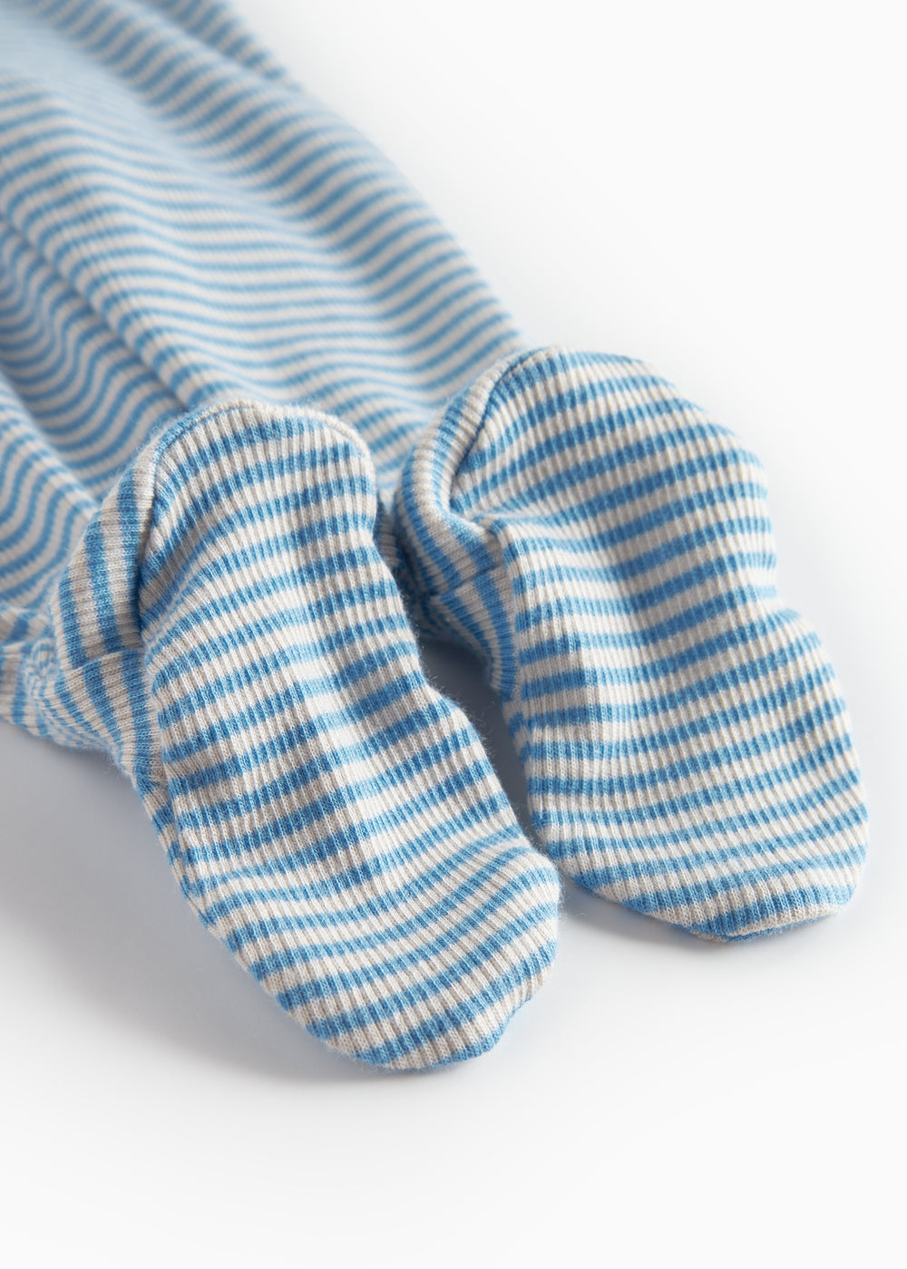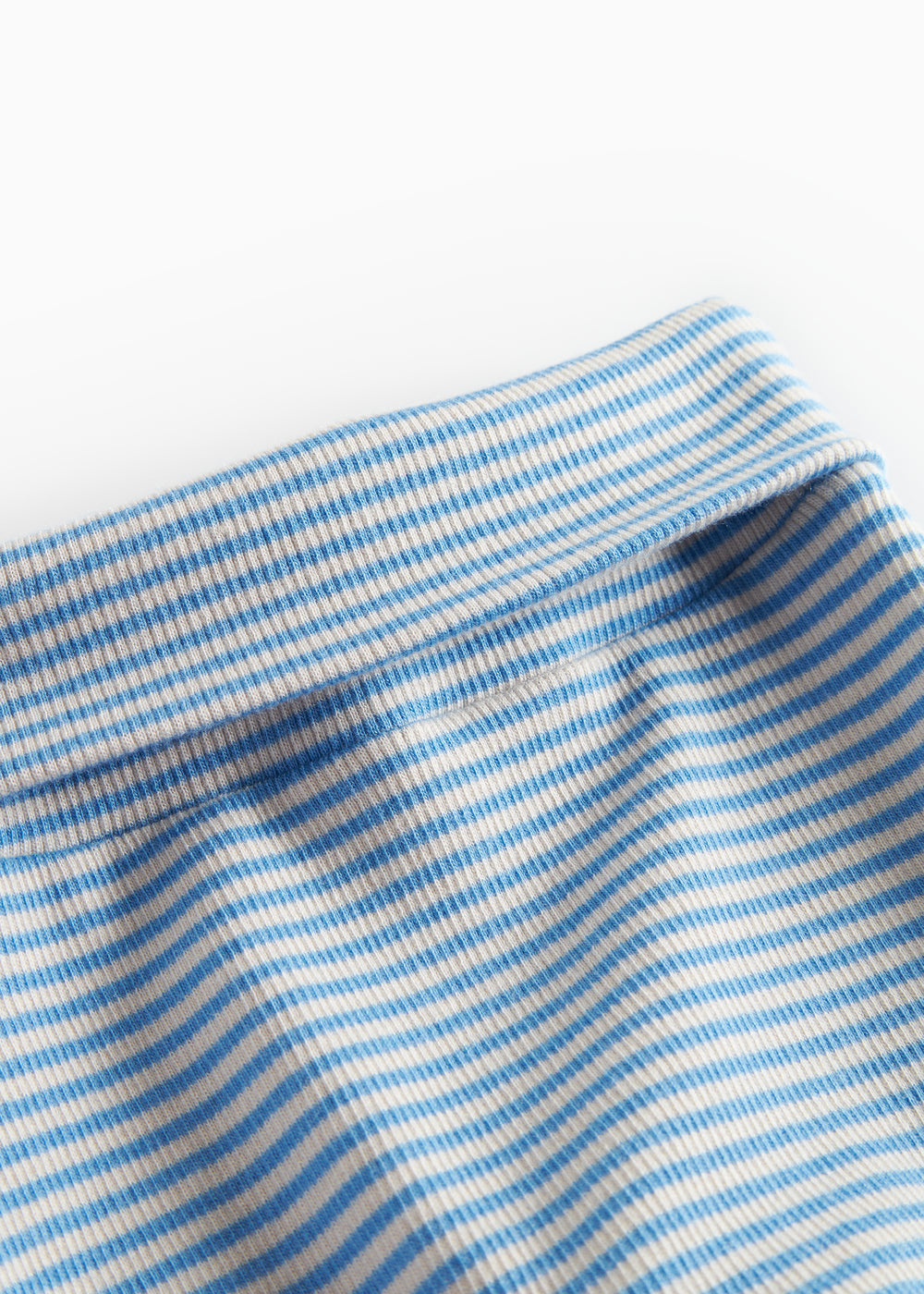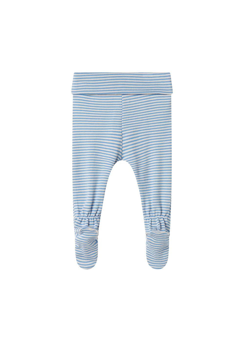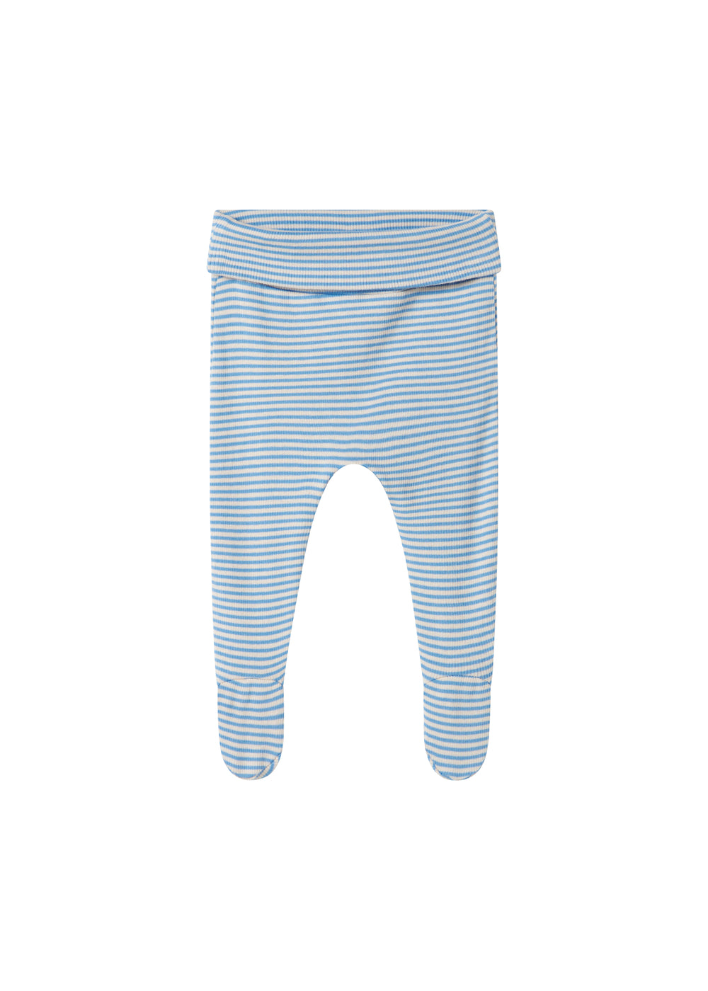 Comfortable pants with feet for newborns with fine stripes. The pants are soft, hold their shape and color and have elastane in them which makes them stretchy and comfortable to wear.