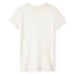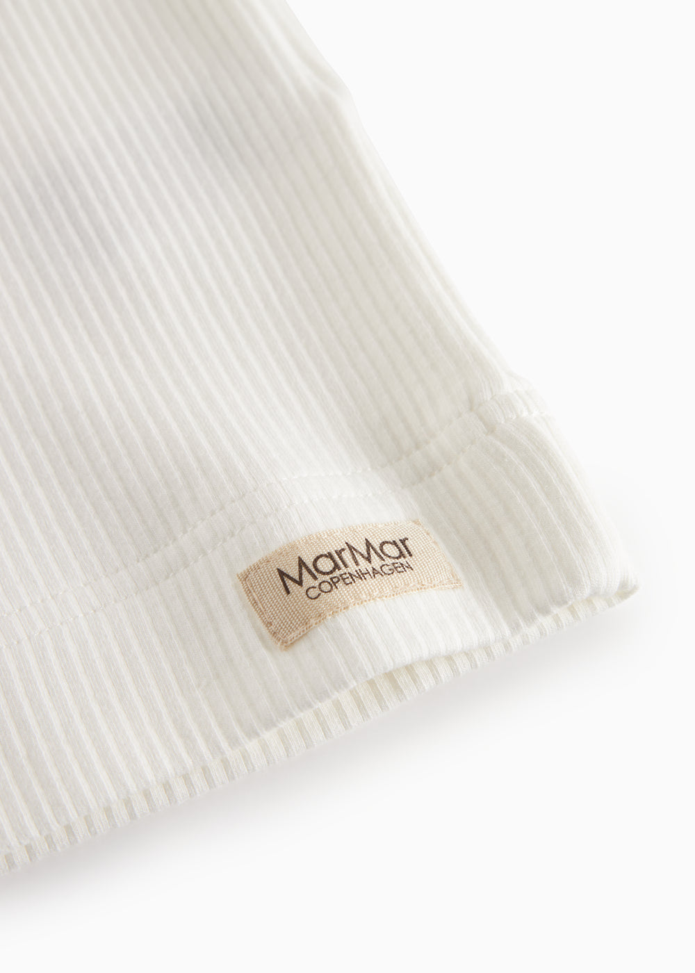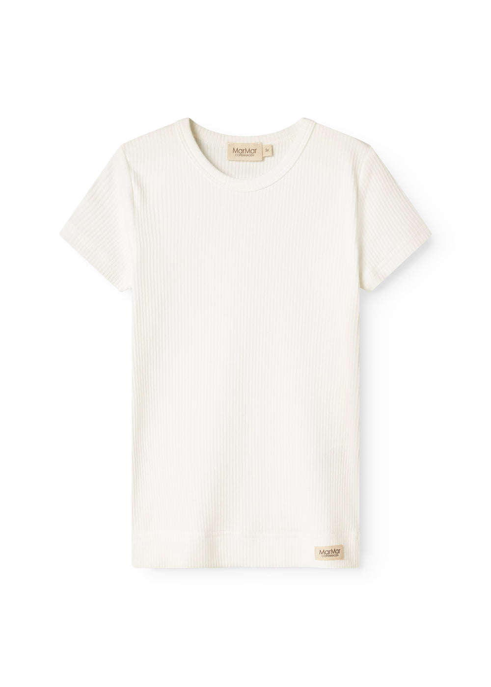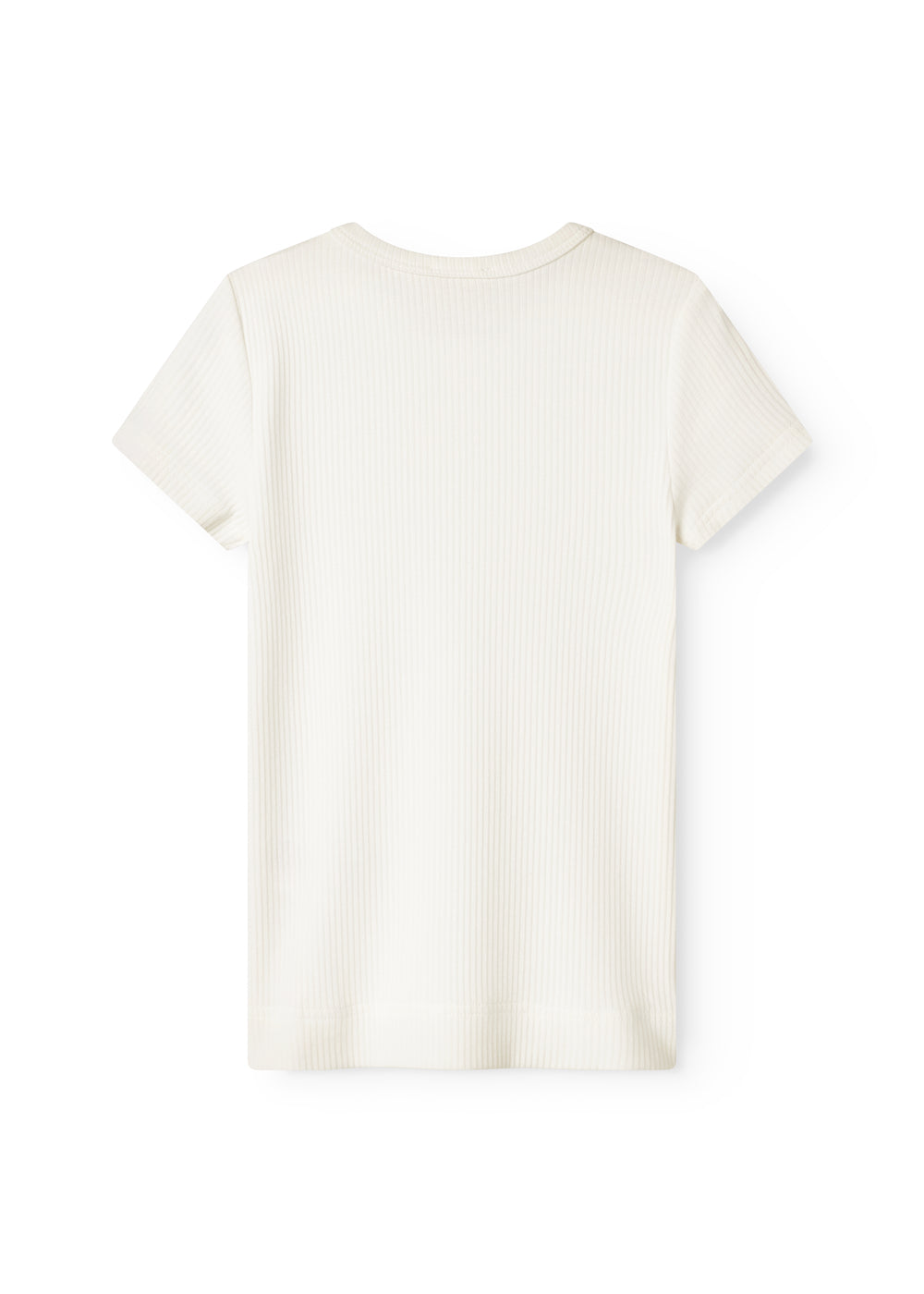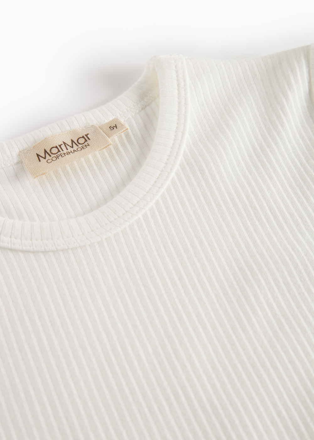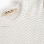 The T-shirt is ribbed, soft, holds its shape and color and has elastane in it, which makes it stretchy and comfortable to wear.