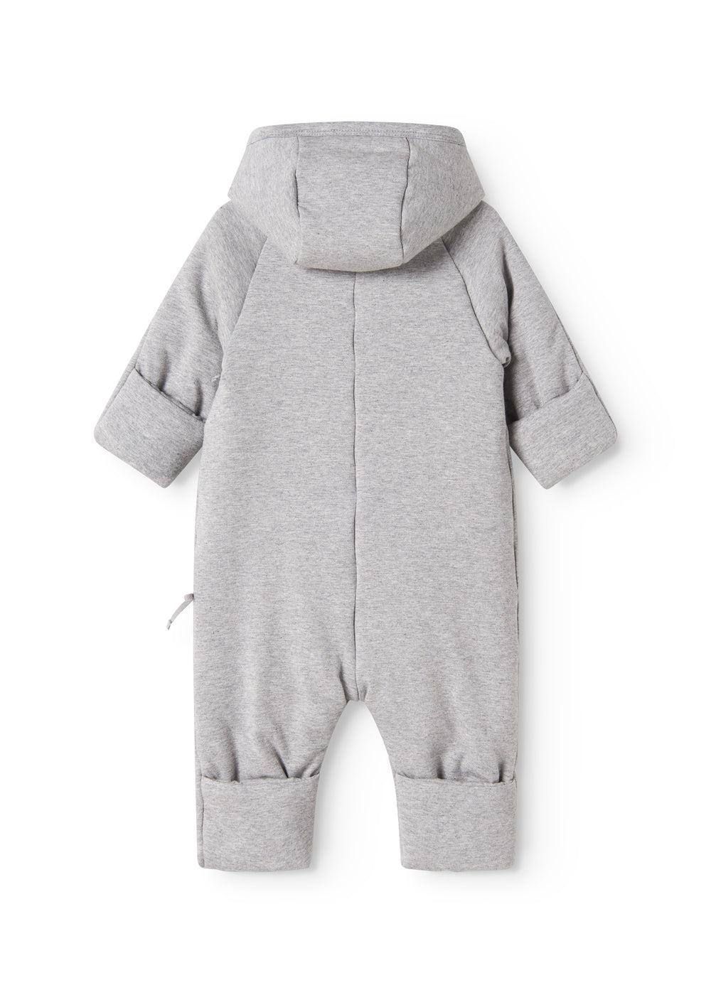 The jumpsuit has smart fold-over options on both hands and feet to keep your little one warm.