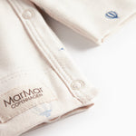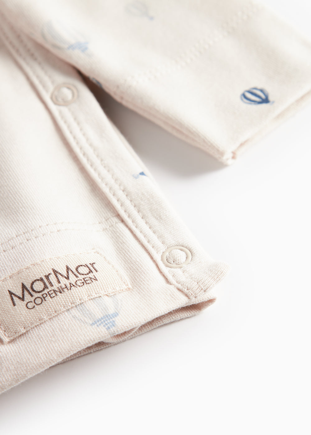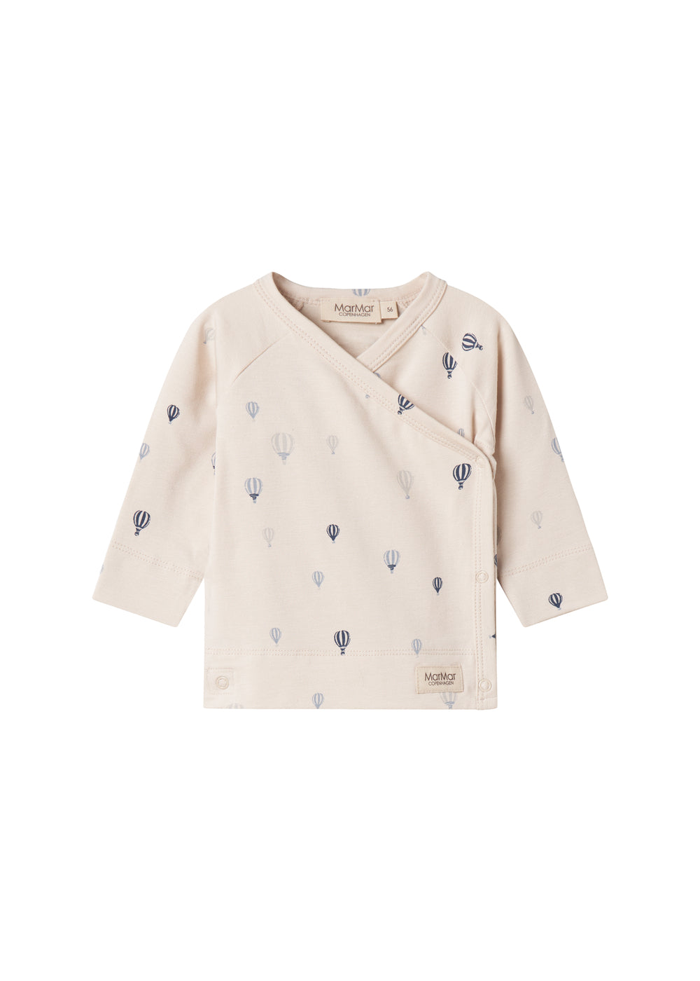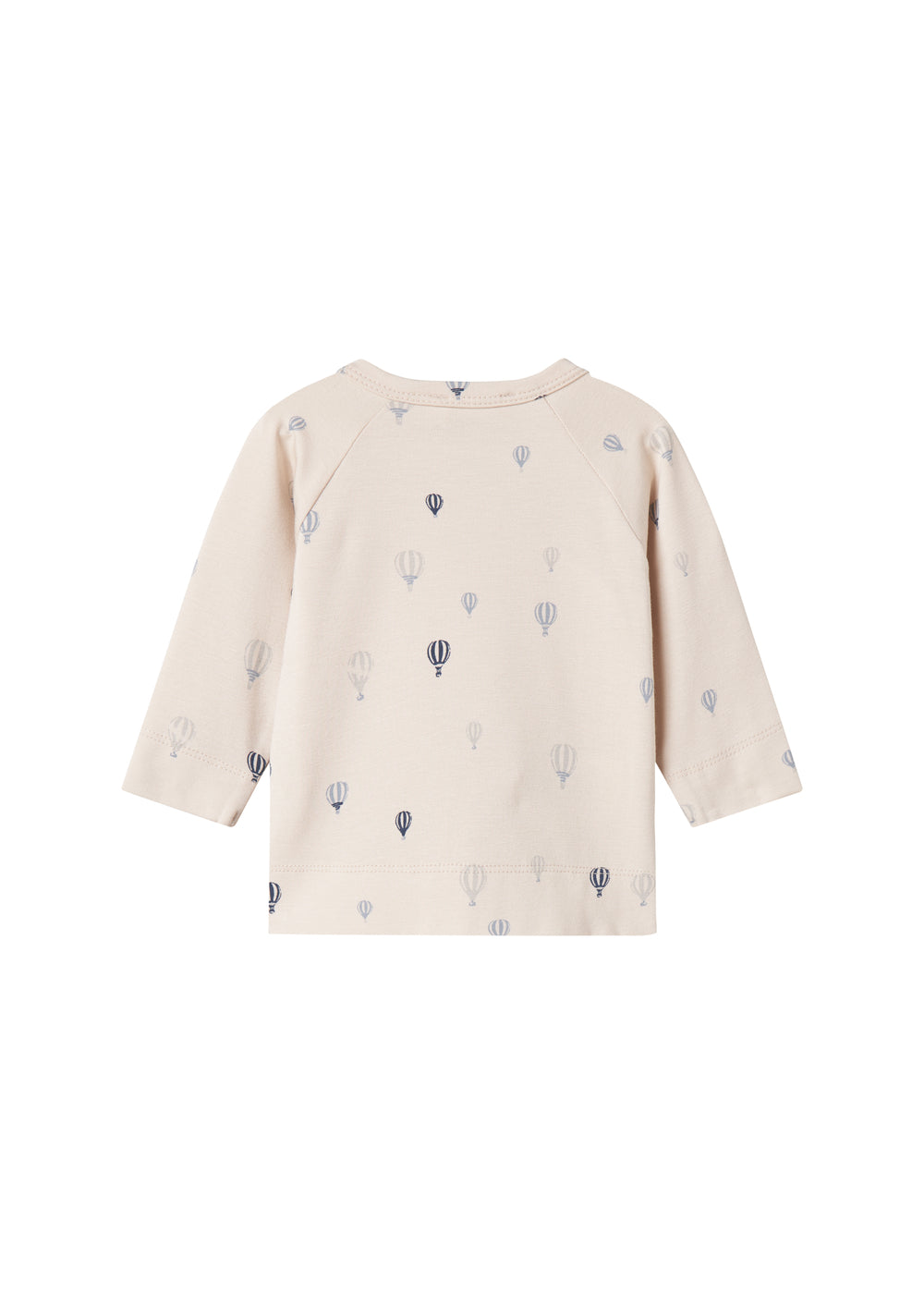 Long-sleeved blouse for newborns with a wrap-around closure. The blouse closes with snaps, has a nice print and is both soft, stretchy and comfortable to wear.