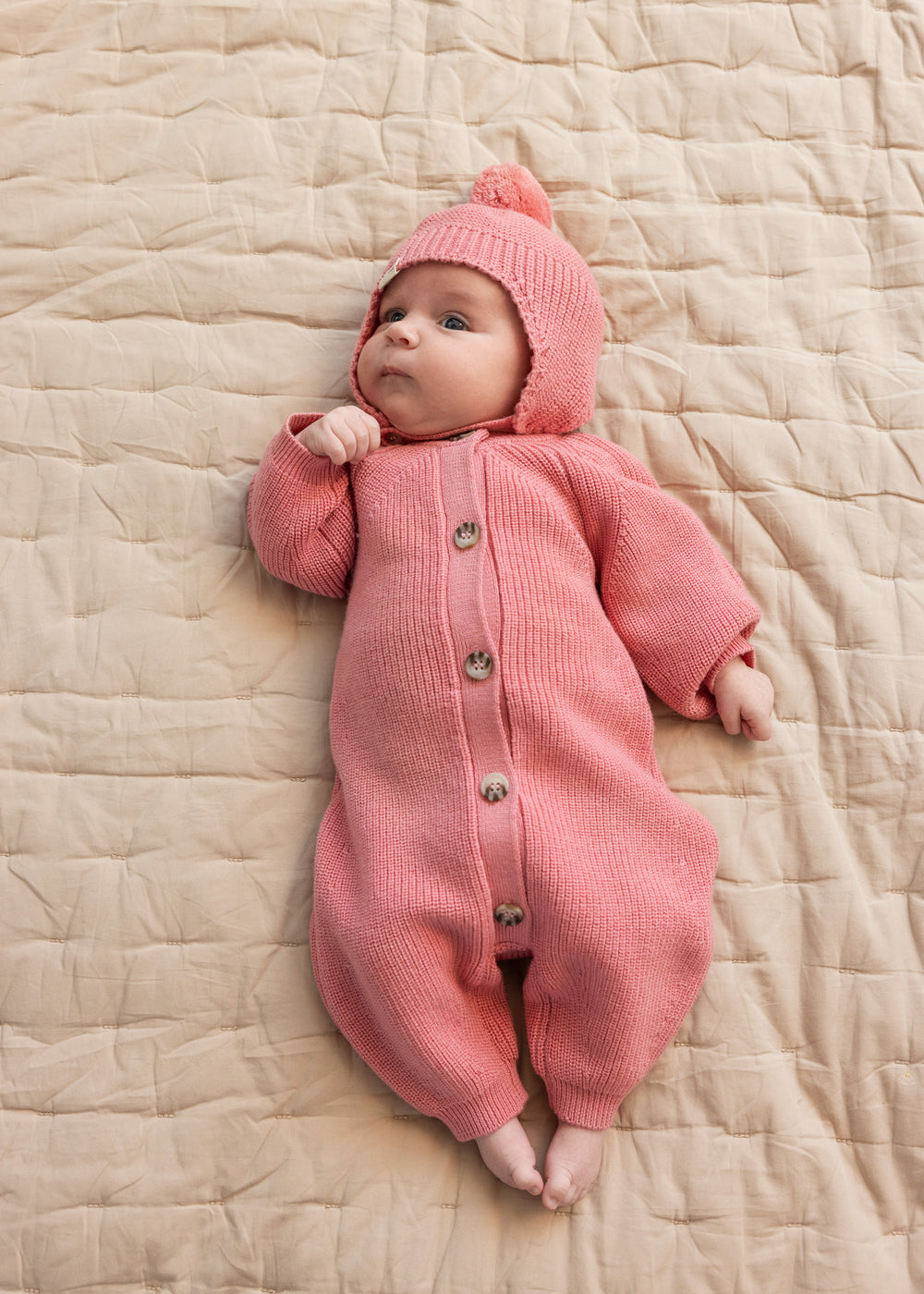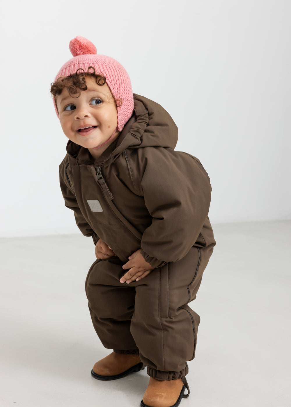 Knitted hat with pompom tassel, which provides optimal protection against the cold by covering both the head and ears while still fitting comfortably. The hat has a strap under the chin that can be adjusted to several lengths. The hat is soft, warm and perfect for the colder days.