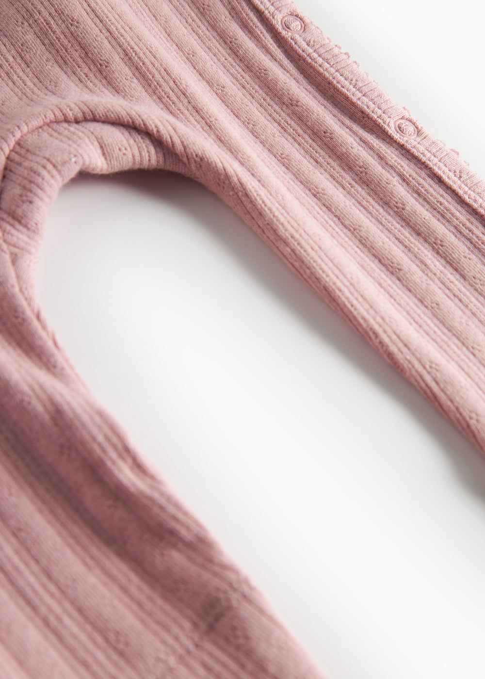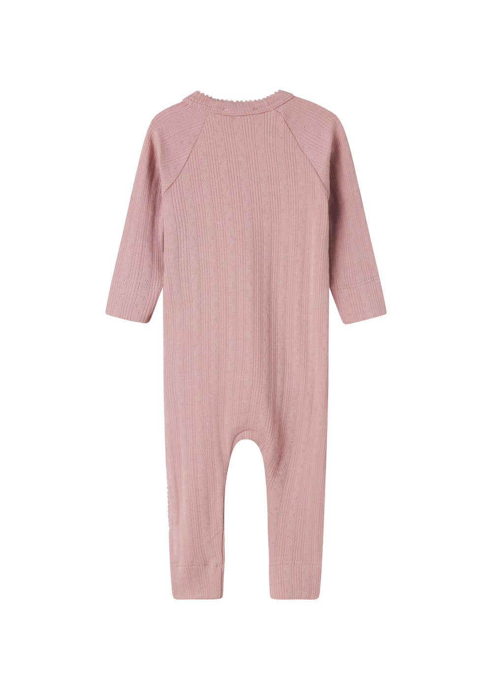 Rosa pointelle heldragt til baby med lange ærmer og slå-om lukning