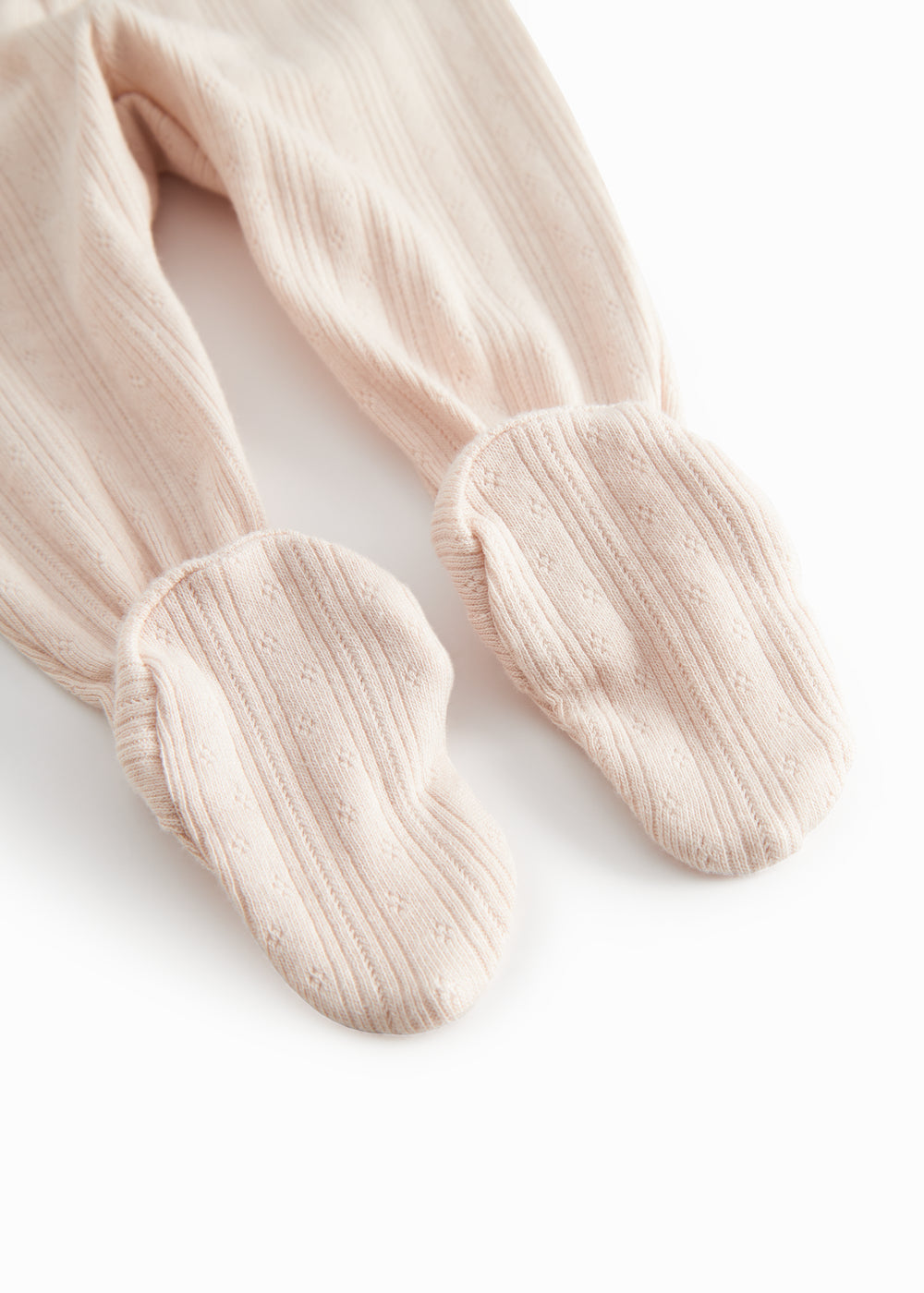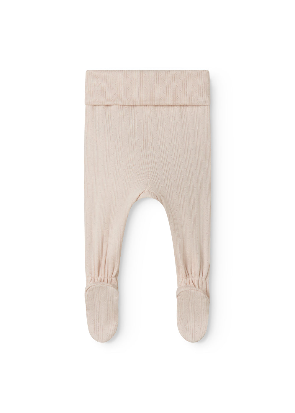 Comfortable pointelle pants with feet for newborns. The pants are soft, stretchy and comfortable to wear.