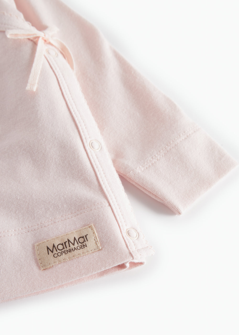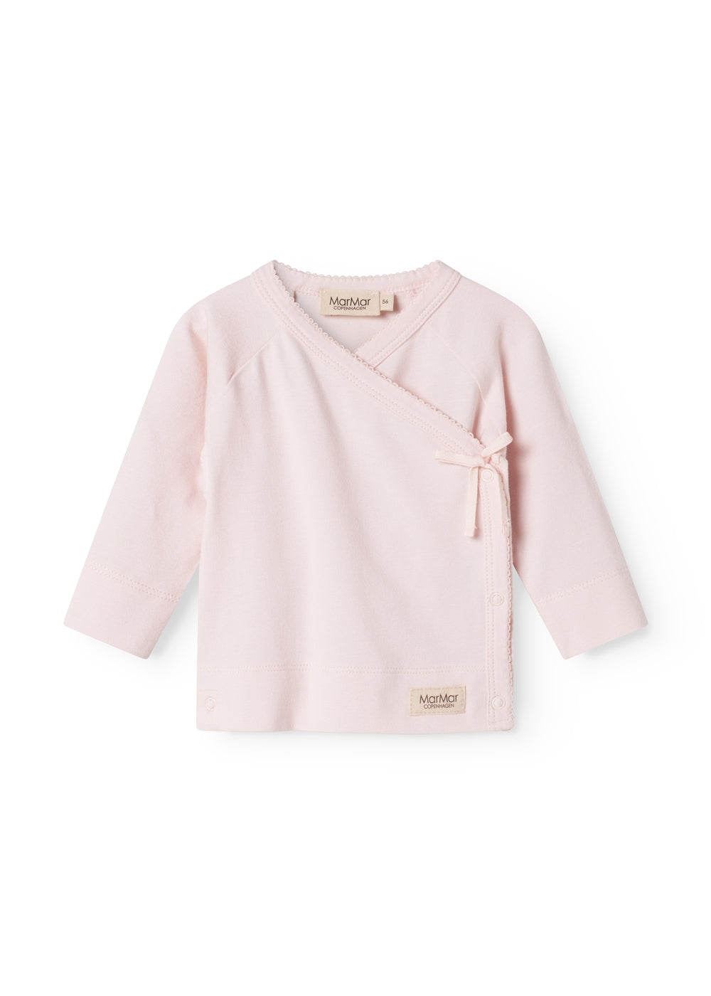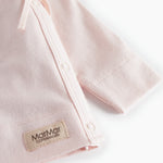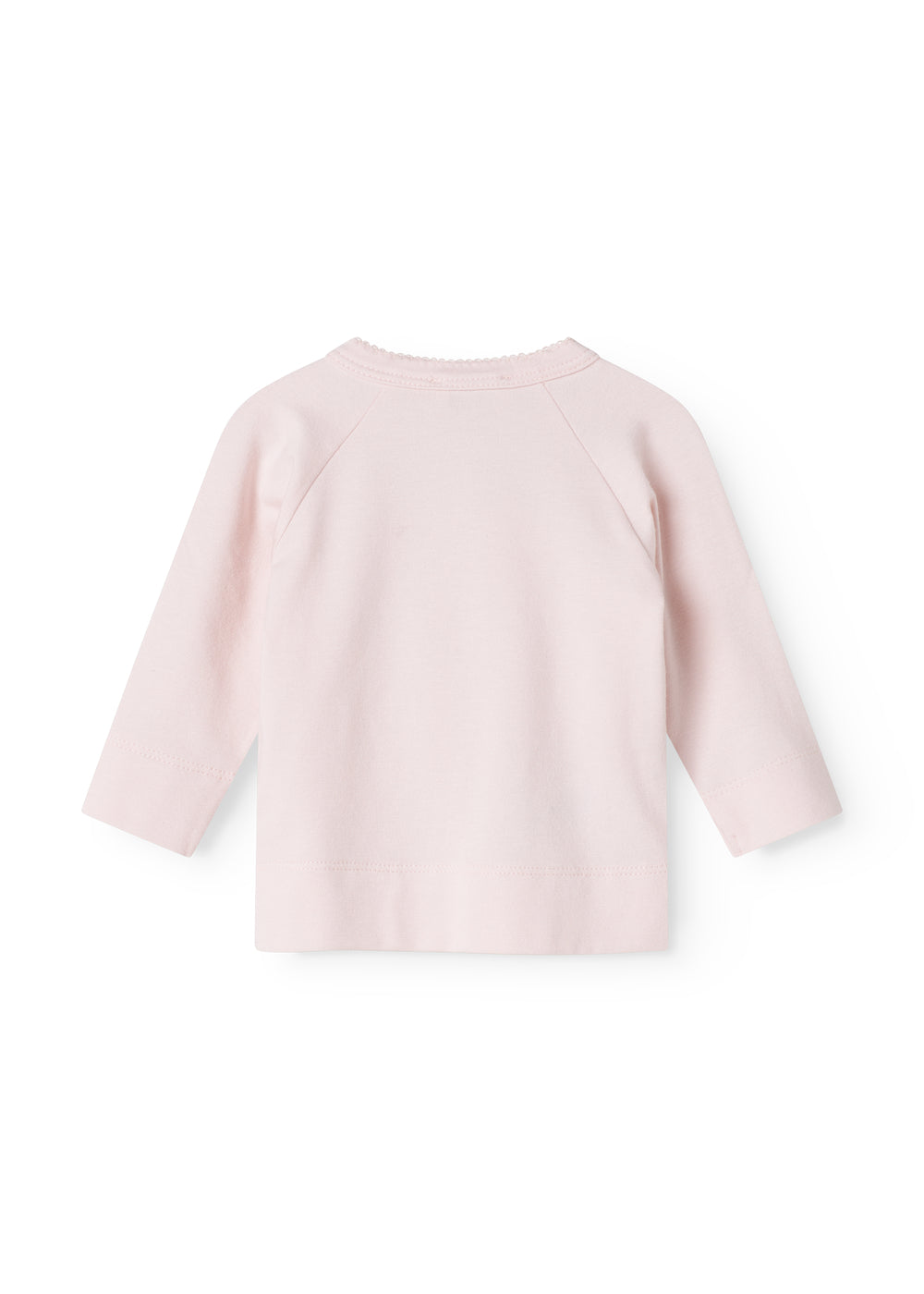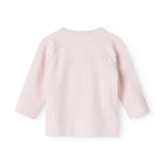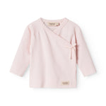 Long-sleeved blouse for newborns with wrap-around closure.