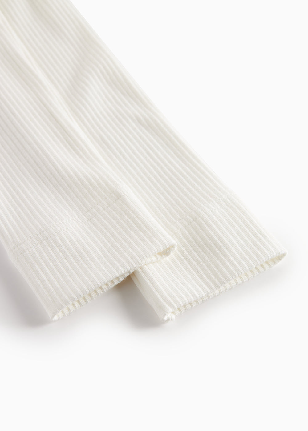 The leggings are ribbed, soft, hold their shape and color and have elastane in them, which makes them stretchy and comfortable to wear.