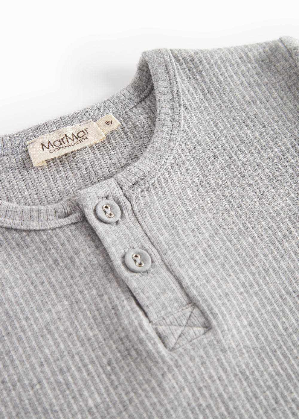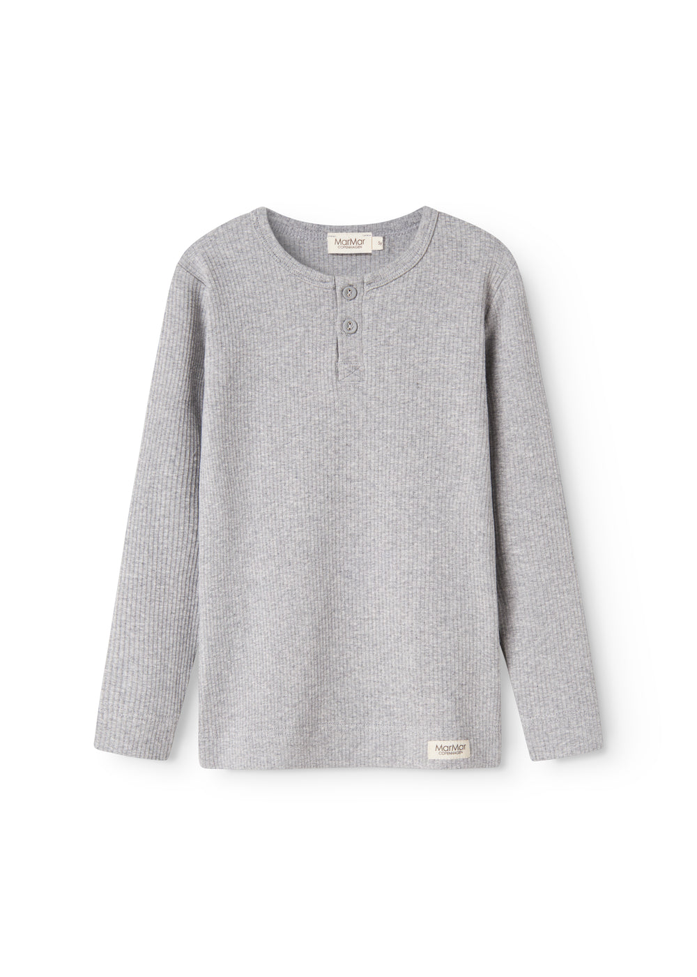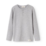 Long-sleeved modal t-shirt for children with placket button closure.