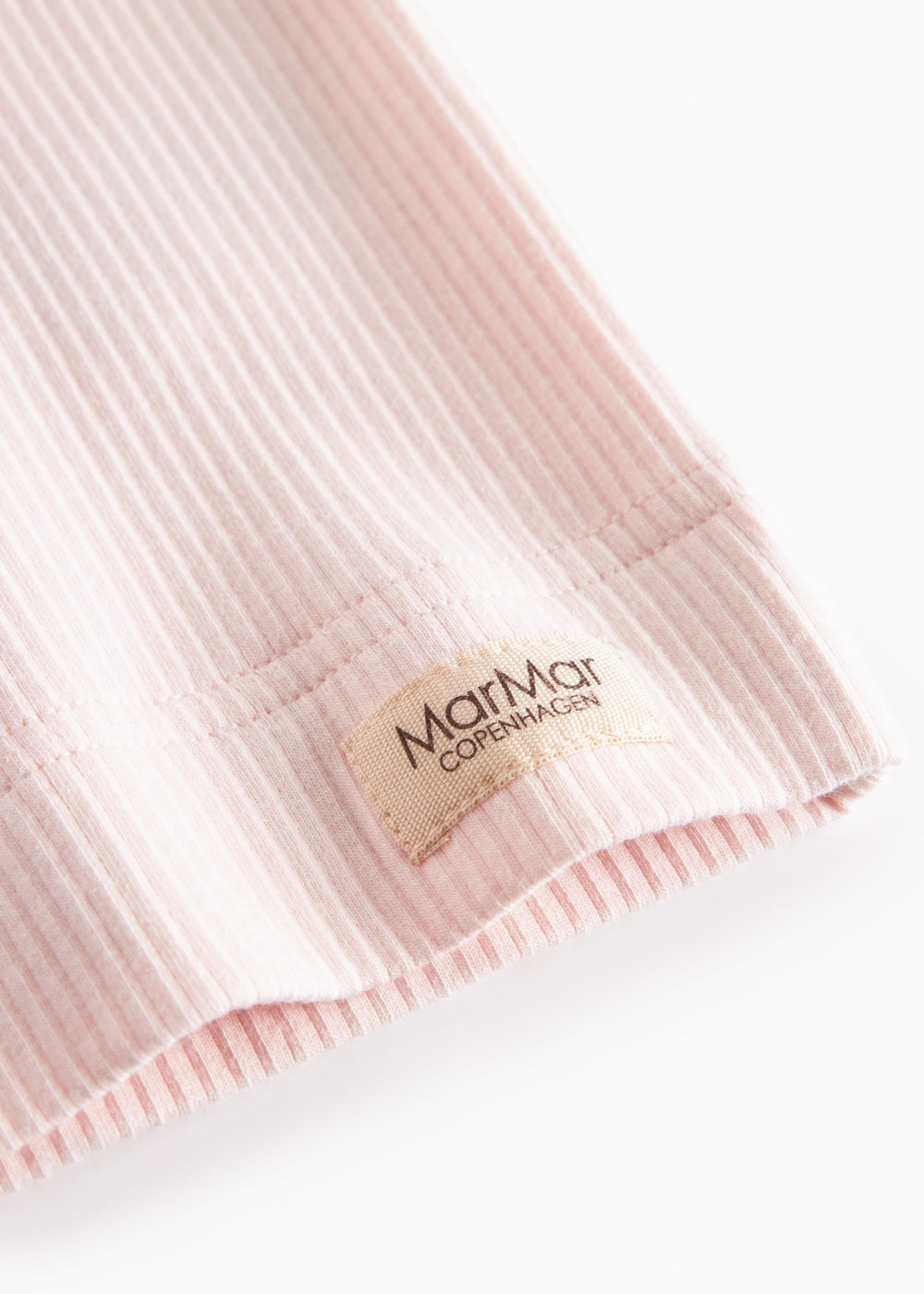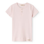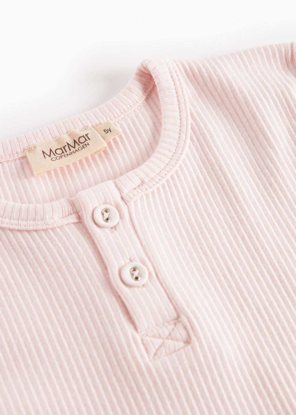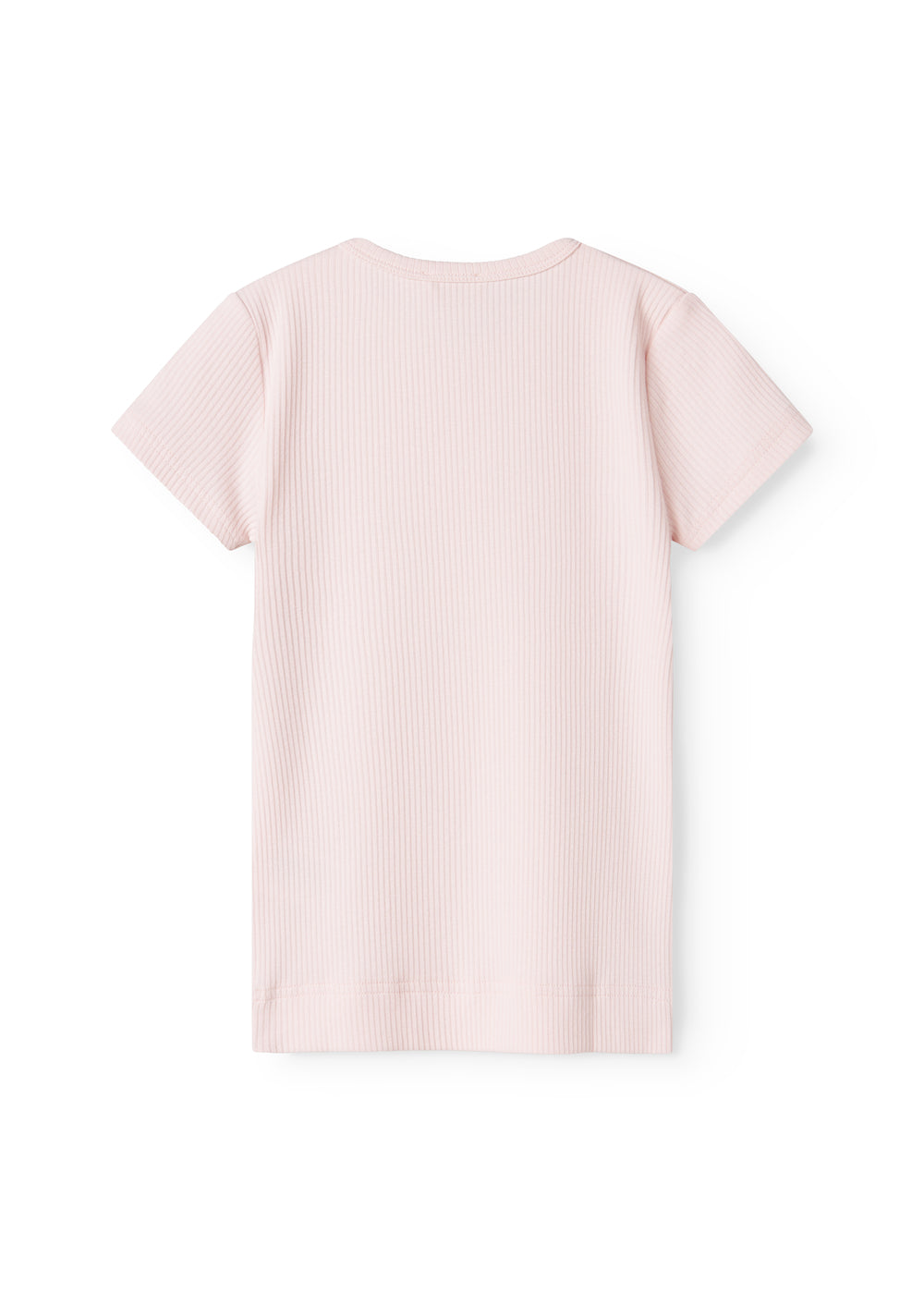 The T-shirt is ribbed, soft, holds its shape and color and has elastane in it, which makes it stretchy and comfortable to wear.