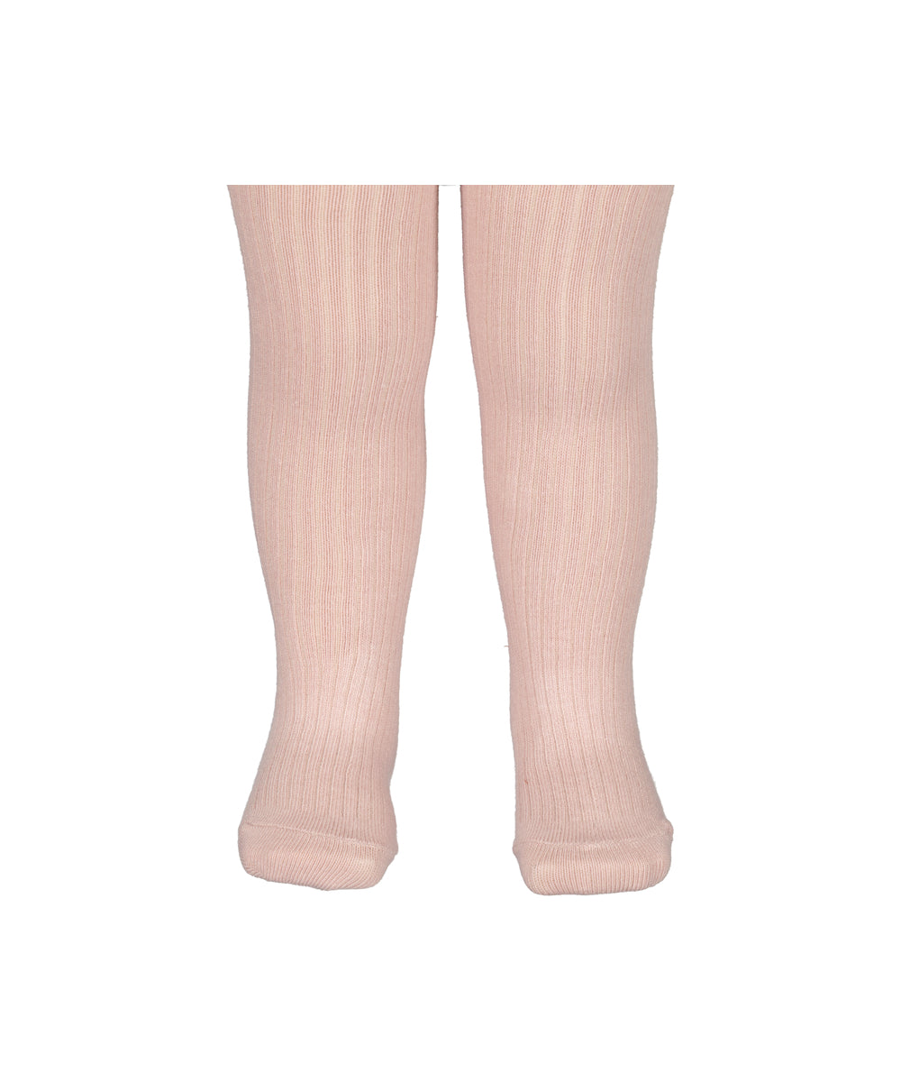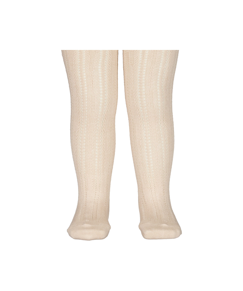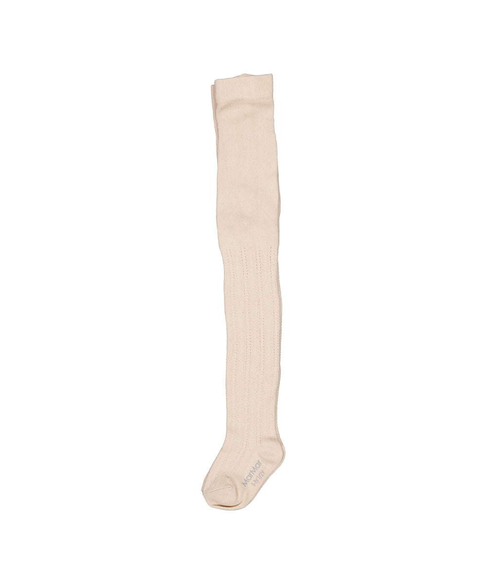 Ribstrikkede strømpebukser til små børn i cremefarvet bomuld