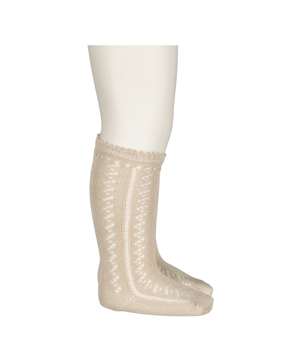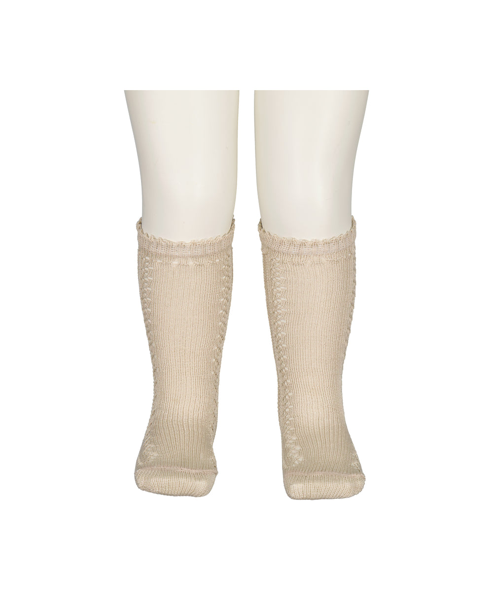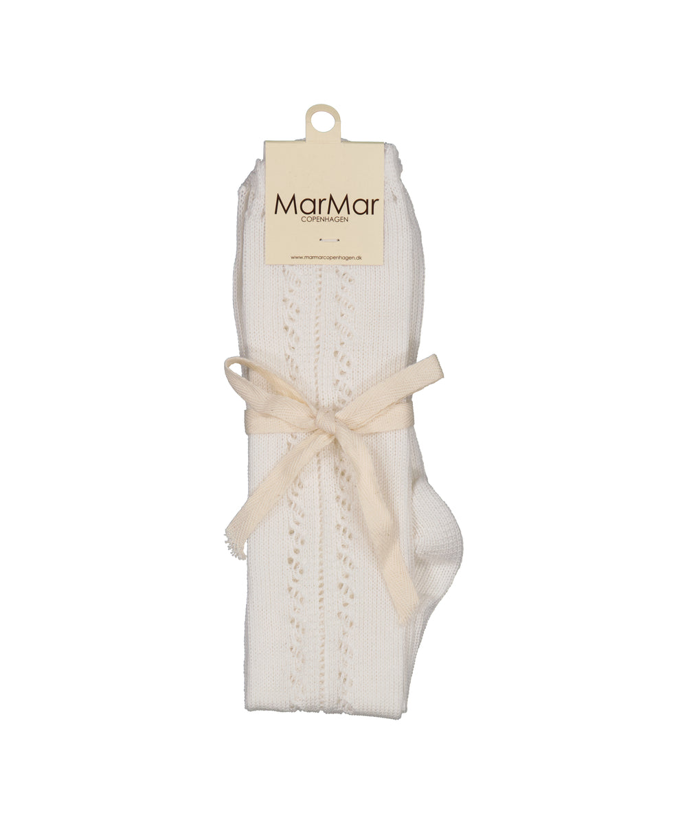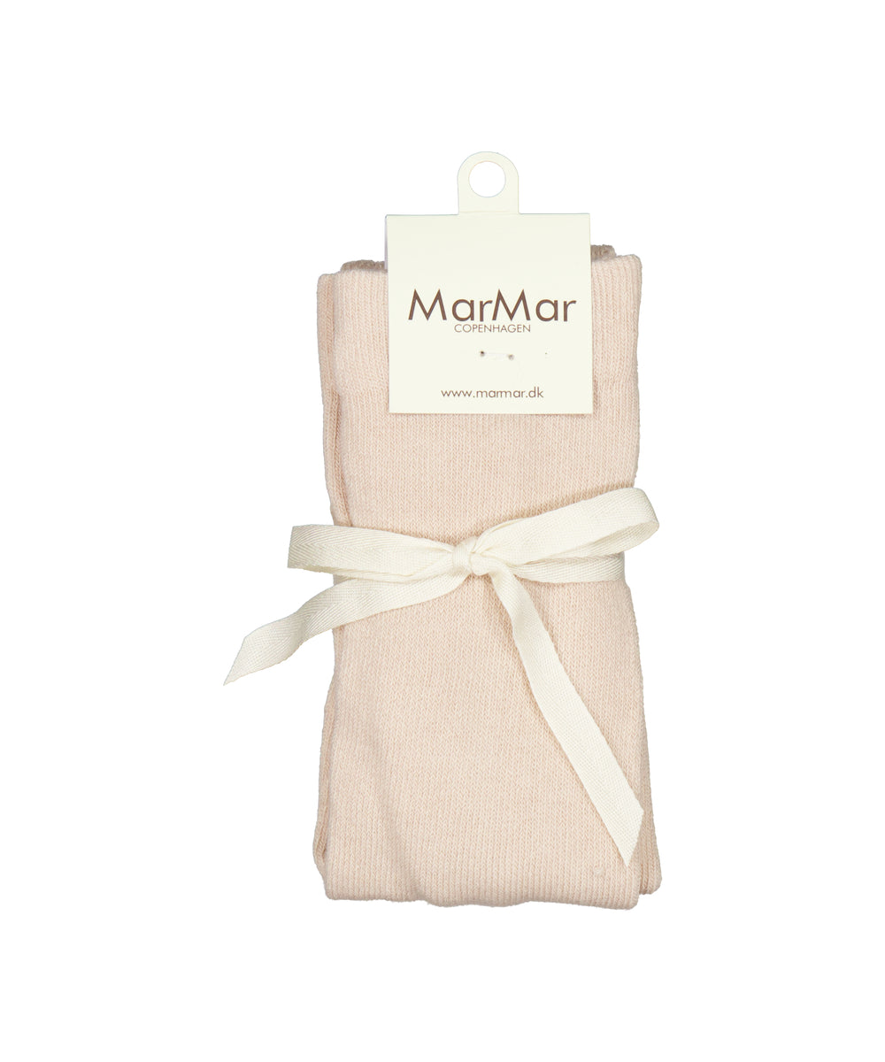 Ribstrikkede strømpebukser til små børn i cremefarvet bomuld