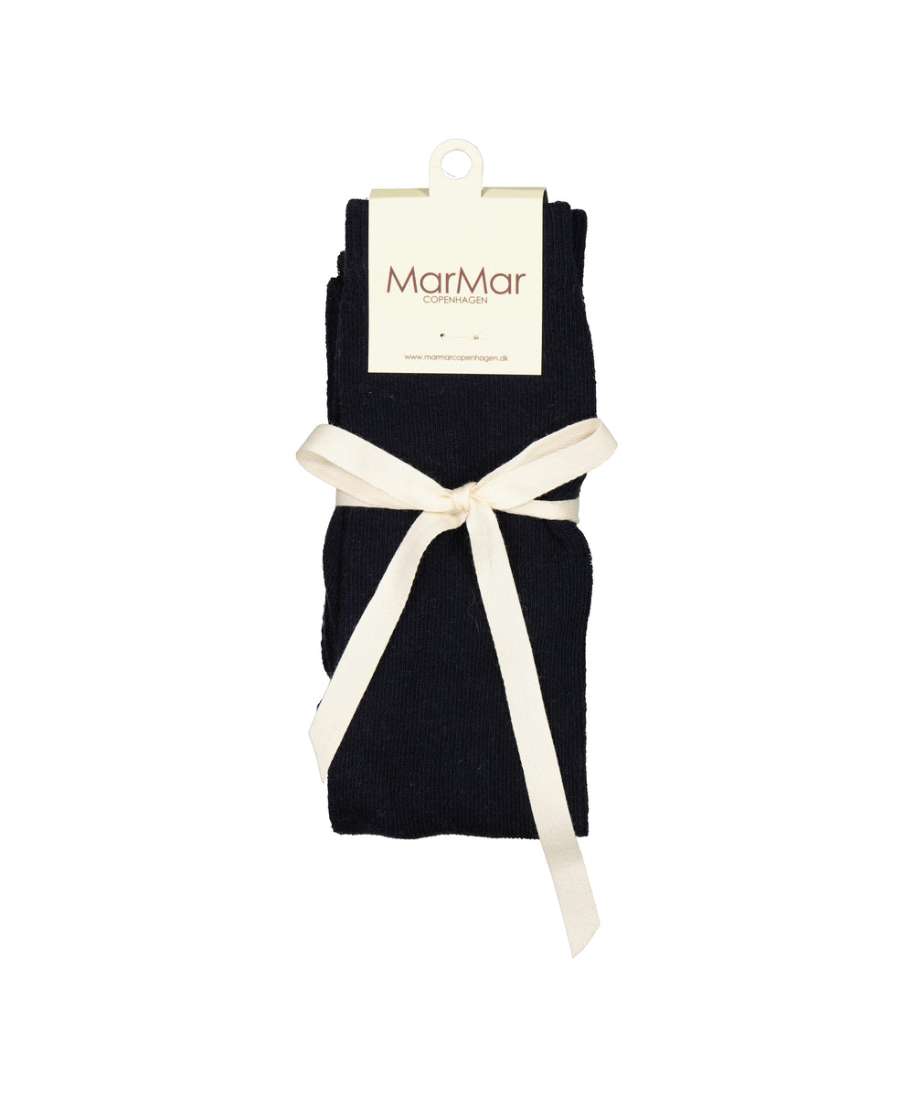 Et par børnestrømper med søde Moomin figurer, den ene i blå, den anden i creme