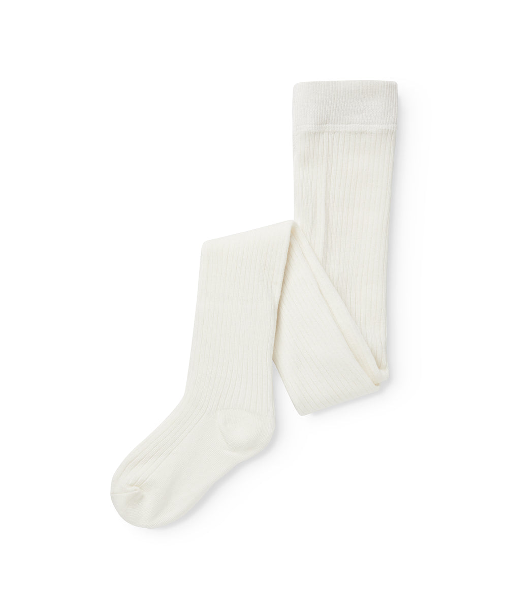Ribstrikkede strømpebukser i cremefarvet bomuld til børn